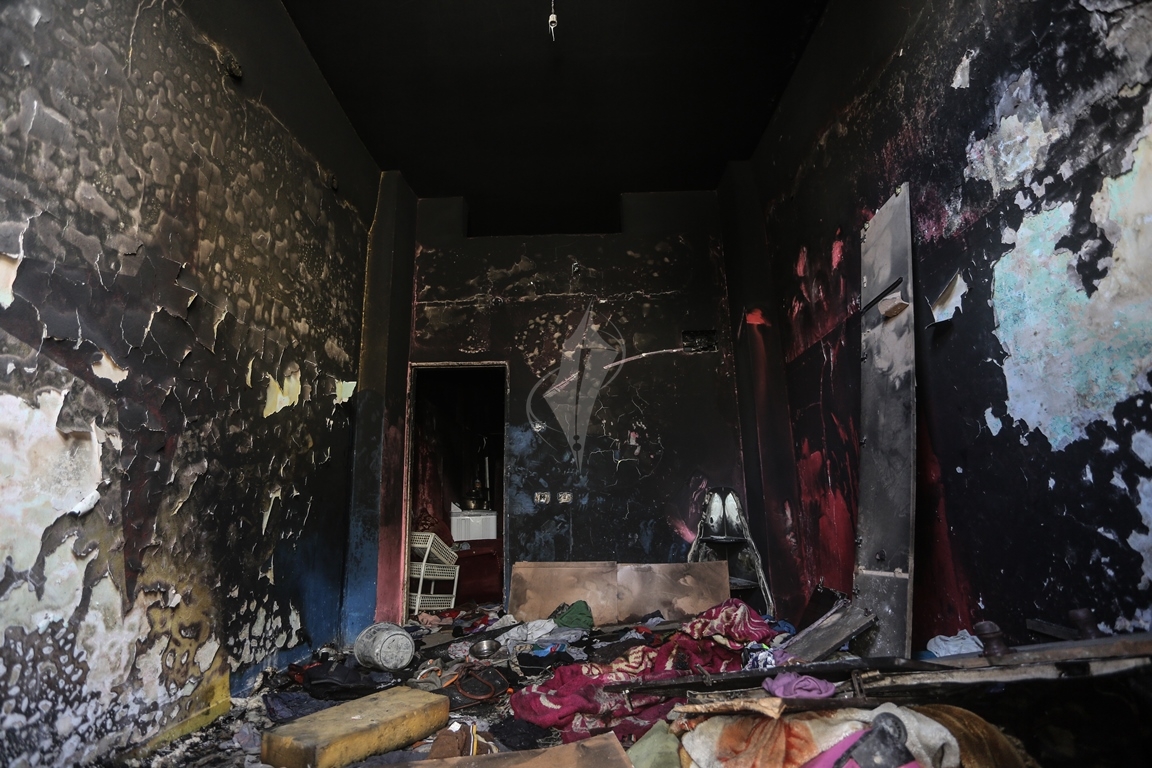 نجت عائلة من موت محقق، فجر اليوم الثلاثاء، بعد اشتعال النار في منزلها في مدينة خان يونس جنوب قطاع غزة.