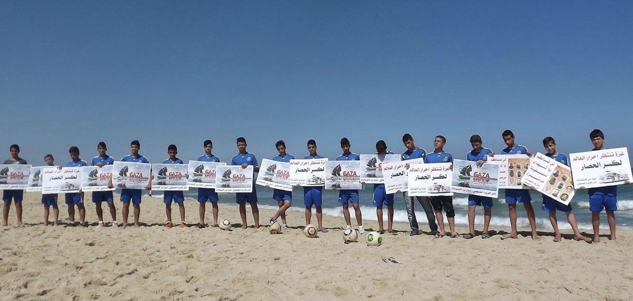 سلسلة بشرية شبابية ببحر غزة تخليداً لشهداء مرمرة