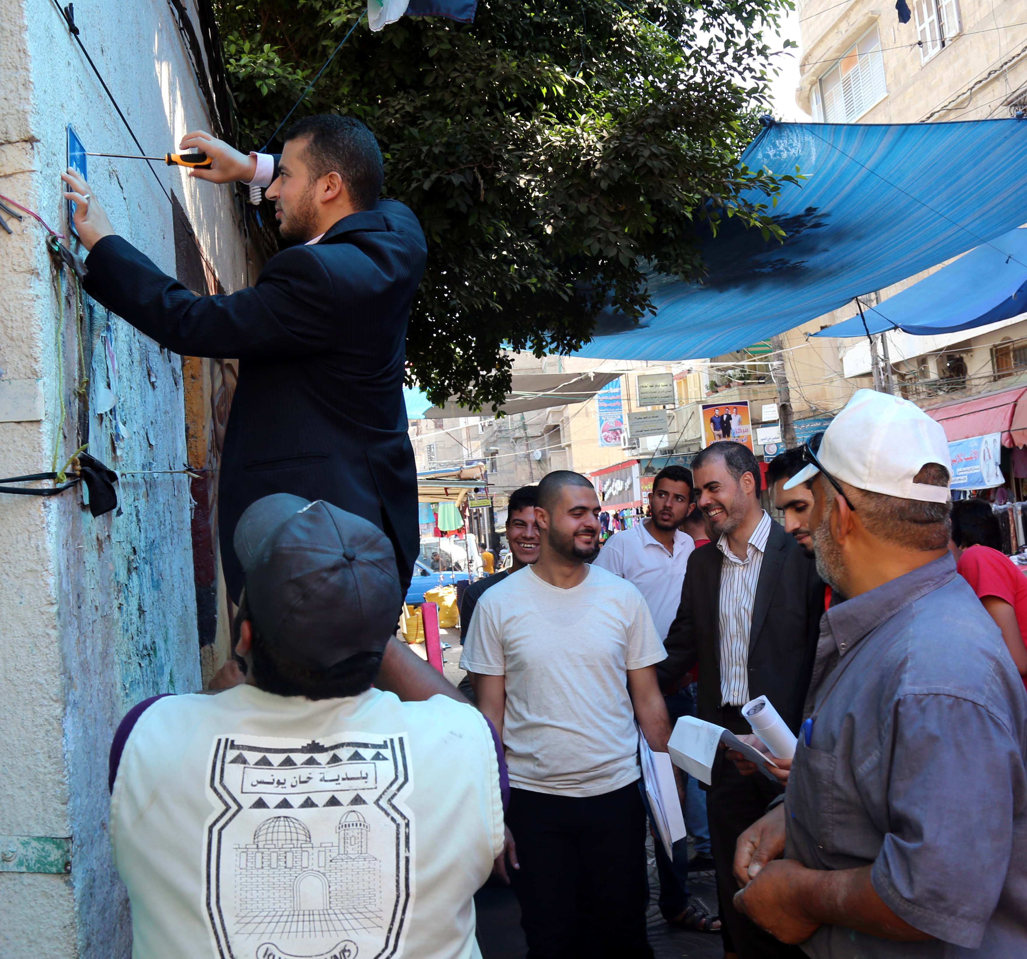 وشارك في تركيب اللوحات رئيس بلدية خان يونس المهندس يحيى الأسطل، ومدير عام البلدية المهندس محمد الاغا، ومدير دائرة العلاقات العامة الأستاذ عماد الاغا، ومسئول قسم إلـ "GIS" والمشرف الفني للمشروع الأستاذ أحمد المصري، ومساعد منسق المشروع ممثلاً عن برنامج خلق فرص عمل الأستاذ باسل ياسين.