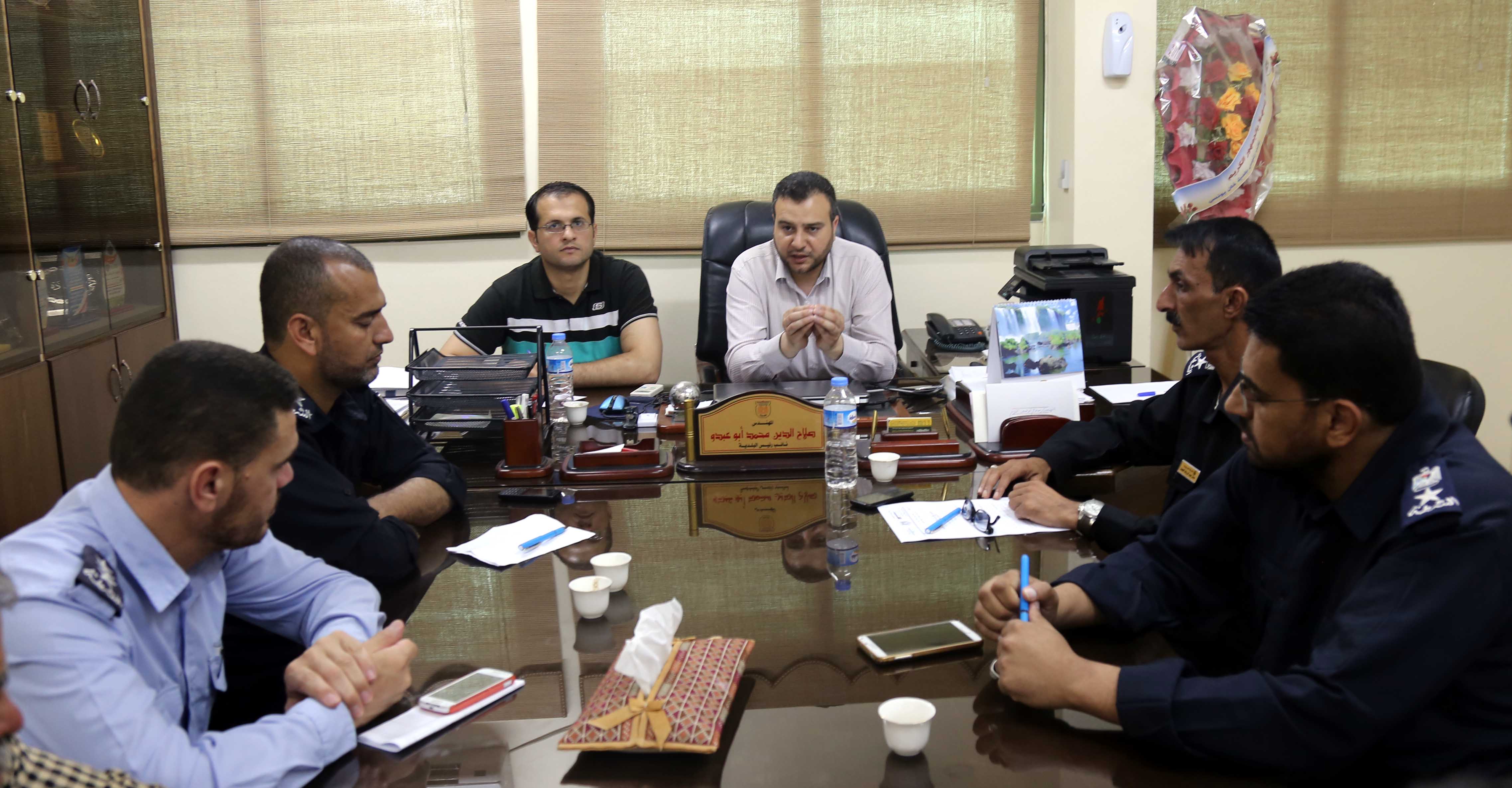 وعقدت البلدية اجتماعاً موسعاً في مبناها بحضور نائب رئيس البلدية المهندس صلاح الدين أبو عبدو، ونائب مدير دائرة العلاقات العامة المهندس حازم الفرا، ورئيس قسم التفتيش والمتابعة الأستاذ أشرف المصري، ومسئول وحدة الأسواق الأستاذ ماهر وافي، بمشاركة مدير مركز شرطة خان يونس المقدم علي القدرة، ومدير شرطة بلديات محافظة خان يونس المقدم عمار العصار ، ومدير شرطة المرور بالمحافظة المقدم وائل أبو عبيد، وعدد من القيادات الشرطية في الأجهزة المختلفة.