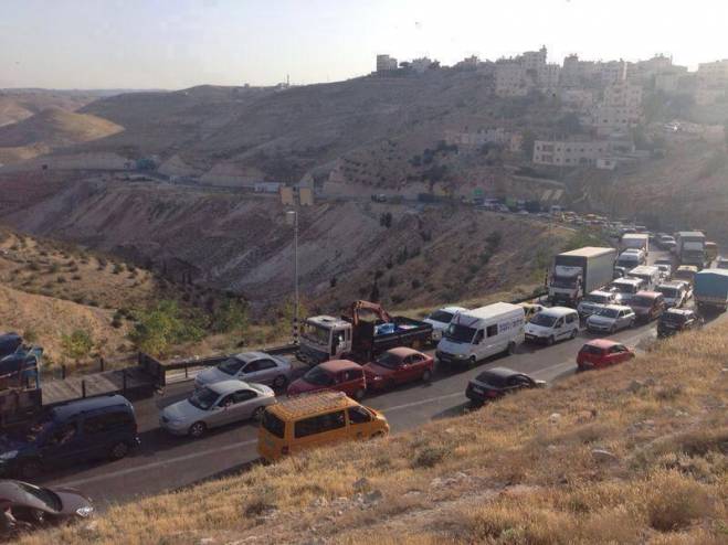 وتسبب إغلاق الحاجز بأزمة مرورية خانقة وتكدس مئات المركبات قرب وادي النار القريب من الحاجز.