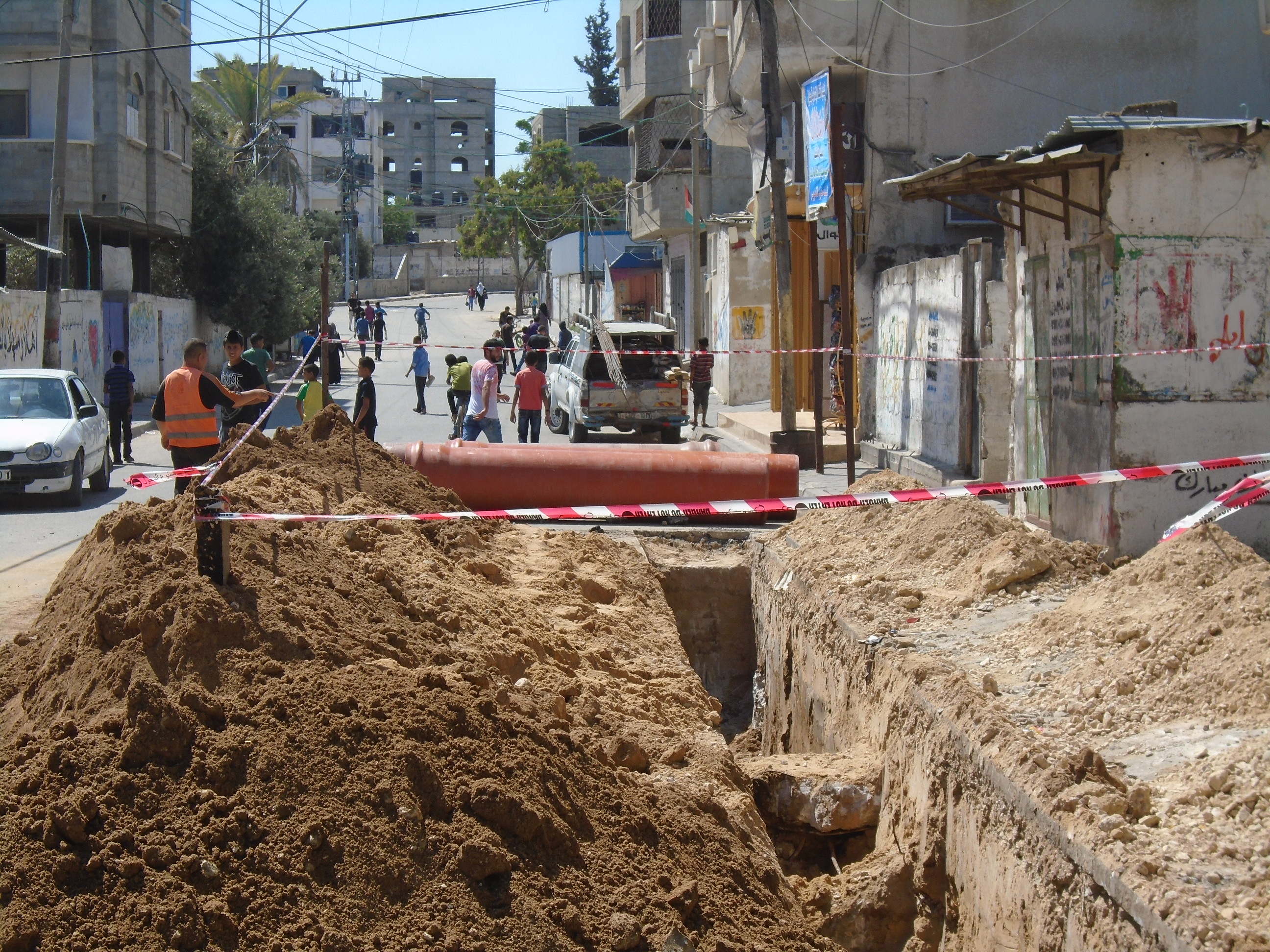 و أفاد المهندس المشرف على المشروع  إياد الصيداوي  أن العمل جارٍ بالمشروع الذي يشتمل على توريد وتركيب مواسير تصريف مياه أمطار بقطر 630  و بطول 150  م.ط مع ما يلزم من مناهل تصريف مياه الأمطار .