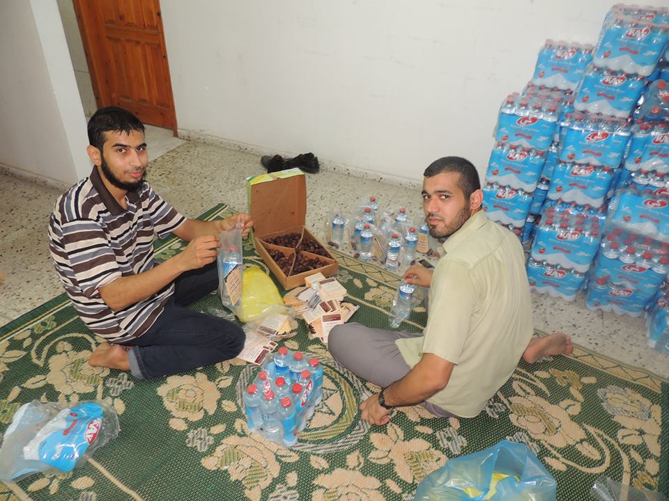 نظمت رابطة علماء فلسطين والاتحاد العالمي لعلماء المسلمين فرع فلسطين حملة إفطار للصائمين على المفترقات العامة، حيث قام الموظفين والدعاة بتوزيع مظاريف تحتوي على تمر وماء ومطوية الاعتكاف والعيد وصدقة الصيام على السائقين والباعة والناس الذين يتأخرون عن الإفطار.