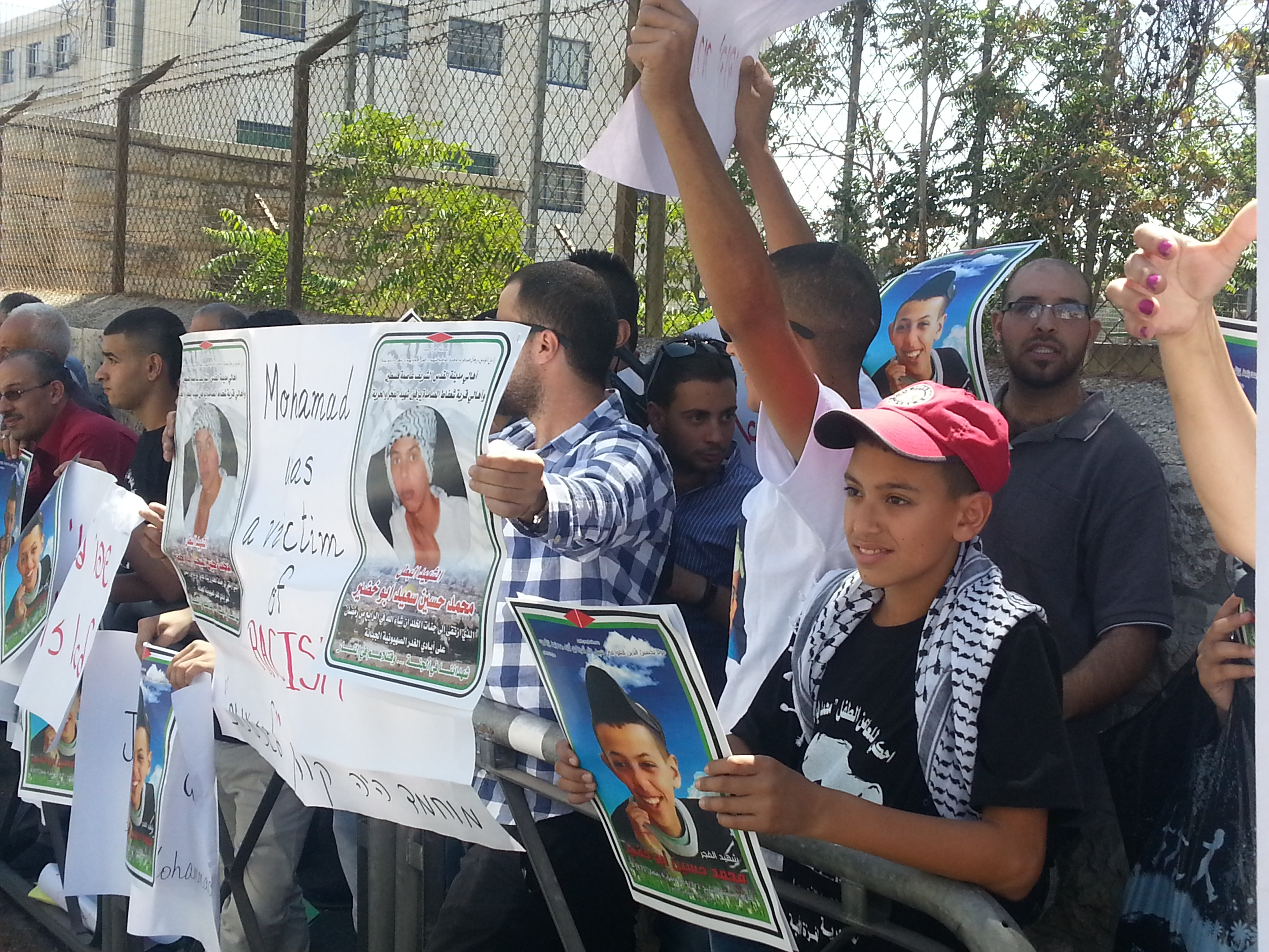 ورفع المشاركون في المسيرة الأعلام الفلسطينية، وصور الشهيد أبو خضير، وجابوا شوارع القرية وهم يرددون الهتافات والأغاني الداعية إلى الوحدة الوطنية، والمؤكدة على ضرورة التمسك بالثوابت الفلسطينية، وطرد المستوطنين، ومقاومة الاحتلال وإطلاق سراح جميع الأسرى والحرية لفلسطين.