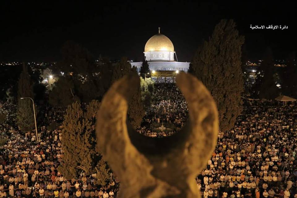 وزحف مئات الآلاف الى القدس منذ فجر الجمعة؛ لأداء صلاة الجمعة الأخيرة "اليتيمة" من شهر رمضان المبارك، وليلة السابع والعشرين من رمضان، وسط انتشار كبير لقوات الاحتلال في محيط المسجد وطرقات البلدة القديمة.