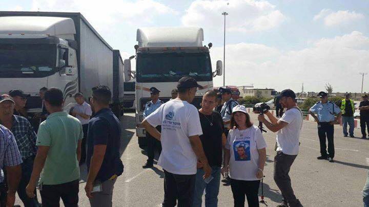 بالصور: عائلة الجندي" شاؤول" تعطل سير الشاحنات عبر "كرم أبو سالم"