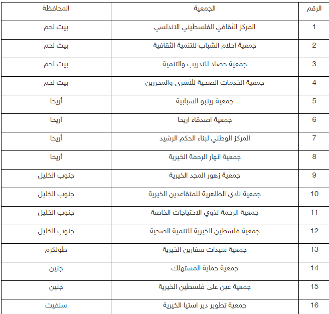 أصدرت وزارة الداخلية والأمن الوطني، الأحد، قرارًا بإلغاء 16 جمعية في محافظات بيت لحم، وأريحا، وجنوب الخليل، وطولكرم، وجنين، وسلفيت.