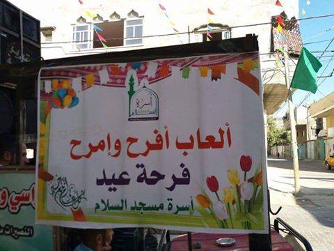 نظمت أسرة مسجد السلام بمدينة دير البلح وسط قطاع غزة في أيام عيد الفطر حفل فرحة عيد، وحمل الحفل اسم (افرح وامرح)، وتم خلال الحفل توزيع الألعاب والحلوى على أطفال حي السلام.