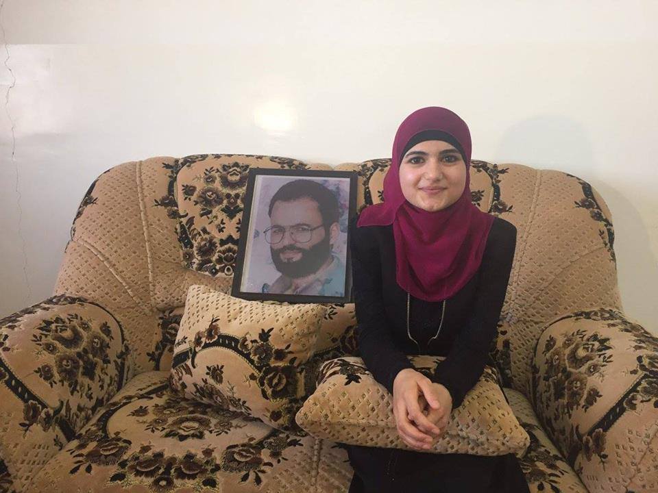تربعت على عرش المتفوقات "ندى عادل عوض الله"، حصدت 99 في فرع العلوم الإنسانية، لكن والدها غيبه رصاص الاحتلال مع عمها عماد منذ 18 عاما.
