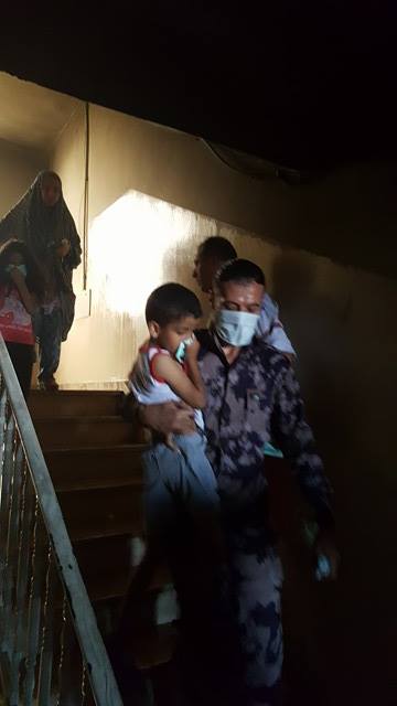 نقل المصابين جراء الحريق