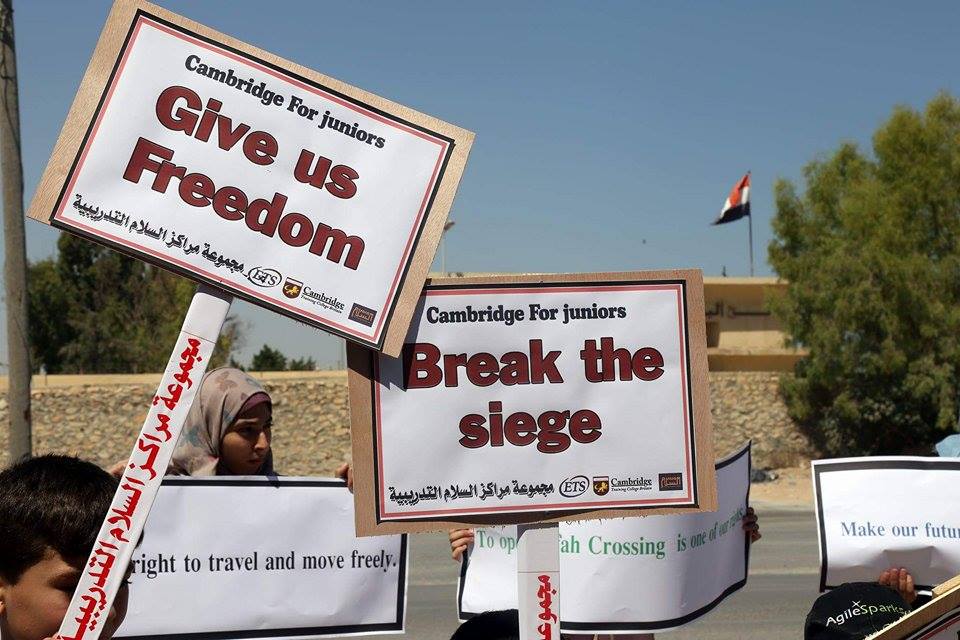 عشرات الأطفال شاركوا في تلك الوقفة التي عبروا بها عن غضبهم من سياسة إغلاق المعابر مع قطاع غزة.