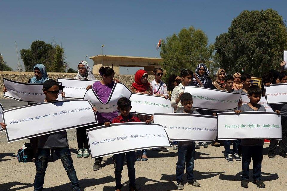 نظم عدد من أطفال مجموعة مراكز السلام التدريبية الوكيل المعتمد للكلية البريطانية "كامبردج"في قطاع غزة، وقفة احتجاجية صباح اليوم الخميس، أمام البوابة المصرية لمعبر رفح البري، للمطالبة بحقوقهم الإنسانية.