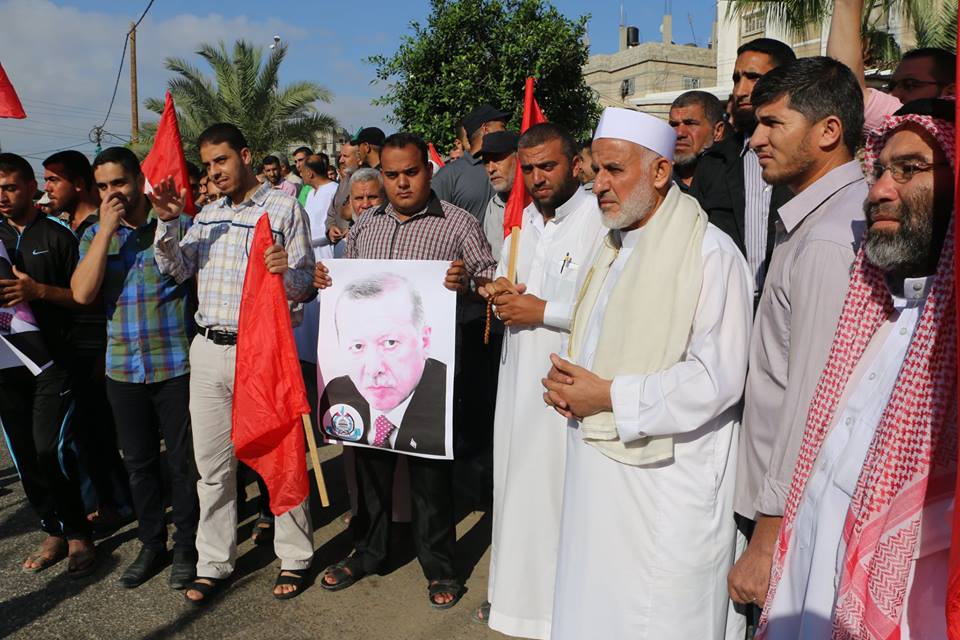 خرجت مسيرات حاشدة صباح اليوم السبت، في أنحاء متفرقة من قطاع غزة للاحتفال بفشل الانقلاب العسكري ضد الرئيس التركي رجب طيب أردوغان، الذي سانده شعبه ونزل للشارع دعما له ولحزب العدالة والتنمية واسقط خطة الانقلابين.