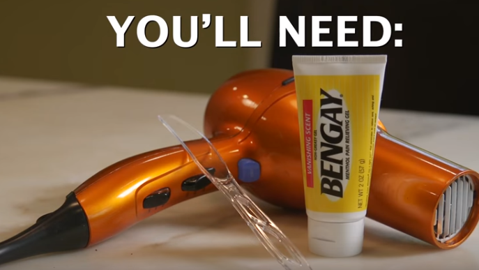 ما ستحتاجه: مجفف شعر، سكين بلاستيكية، جل تسكين آلام العظام والمفاصل.