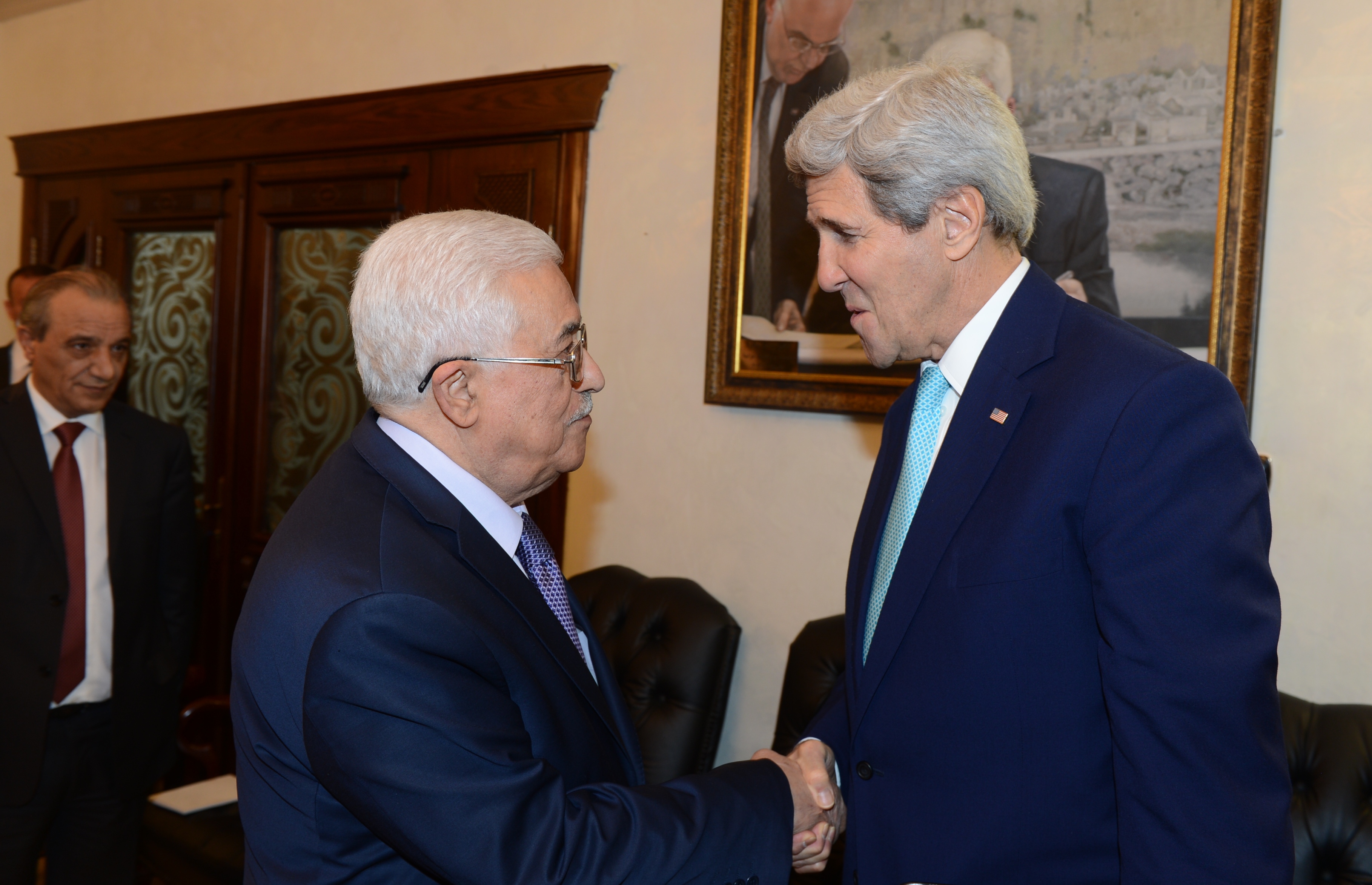 عباس يلتقي وزيري خارجية أمريكا وفرنسا بباريس