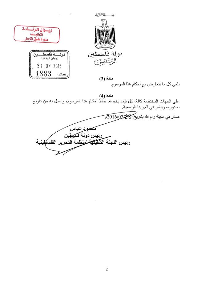 أصدر رئيس السلطة الفلسطينية، محمود عباس اليوم الاثنين، مرسوماً رئاسيًا بتحديد نسية أعضاء المخصصة للمسيحيين والمسلمين في الانتخابات المحلية في بعض المدن صدر بتاريخ 28/7/2016م.
