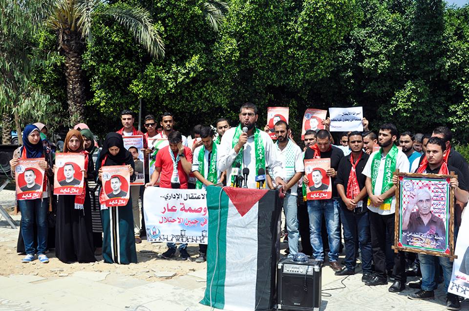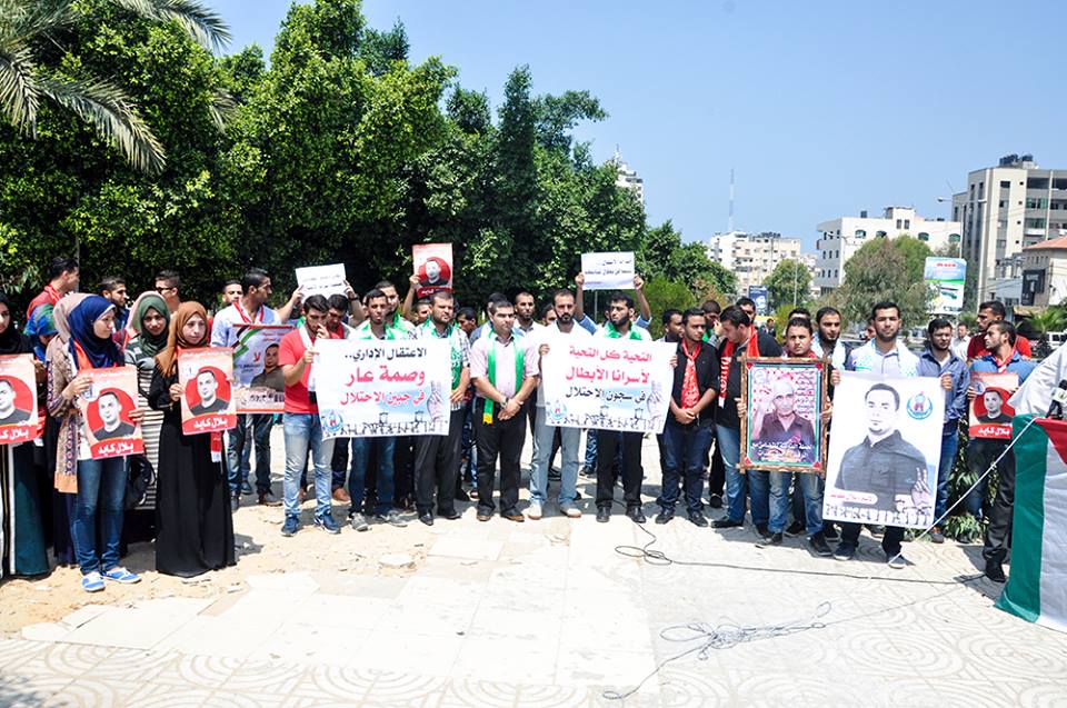 نظمت الكتلة الإسلامية وقفة تضامنية على مفترق جامعة الأزهر مع الأسير بلال كايد المضرب عن الطعام منذ 50 يوماً على التوالي احتجاجاً على تحويله للاعتقال الإداري بعد إتمام مدة محكوميته البالغة أربعة عشر عاماً ونصف.