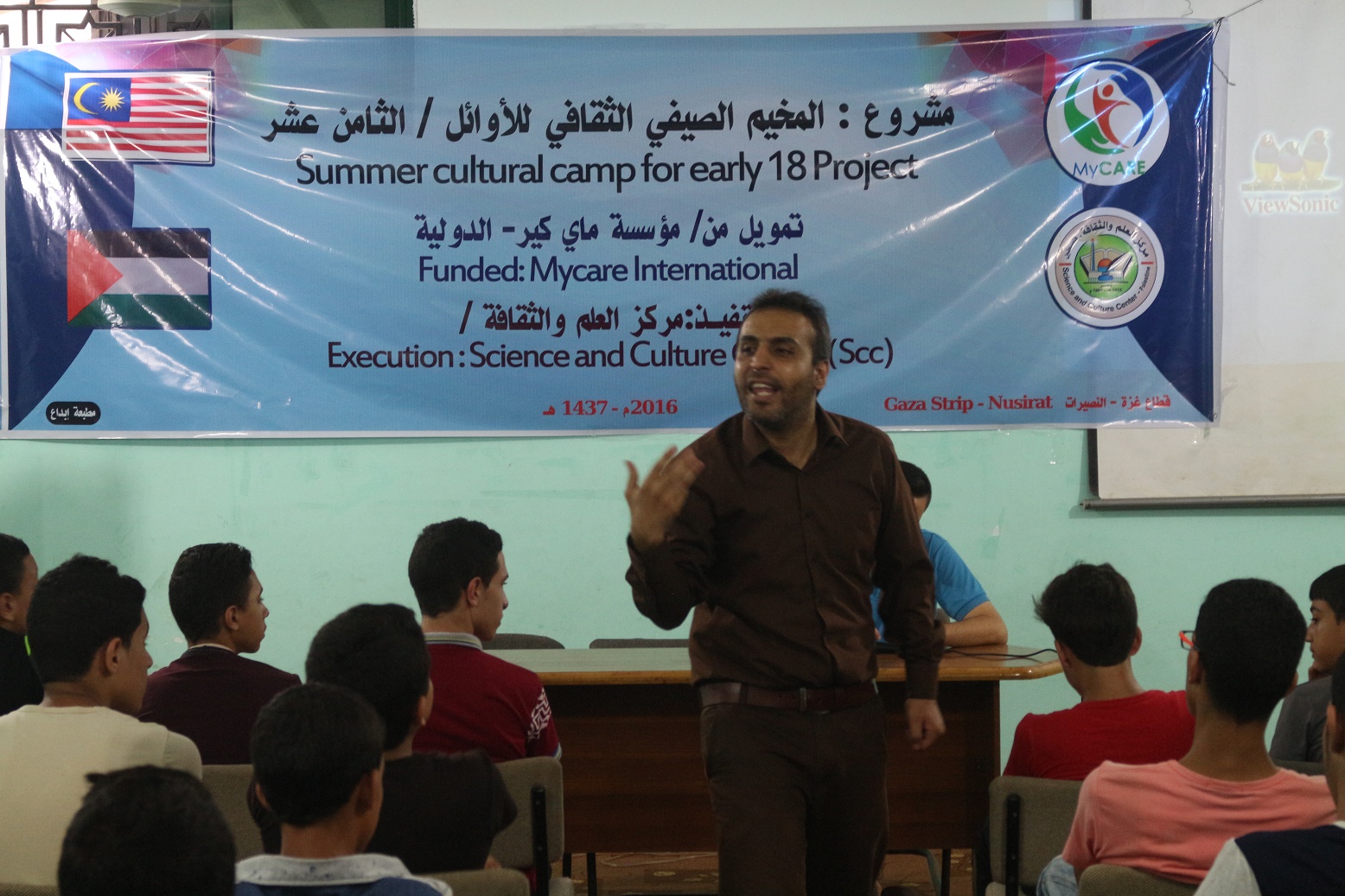 وافتتح اللقاء رئيس مركز العلم والثقافة أ.د كمال غنيم فرحب بمدير التربية والتعليم والحاضرين ثم تحدث عن مركز العلم والثقافة والرؤية التي يحملها لتفعيل المشهد الثقافي، وتحدث عن المخيم والفئة المستهدفة فيه عبر ثمانية عشر عاماً.