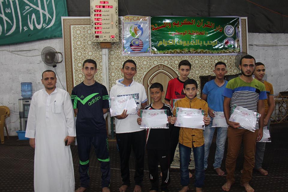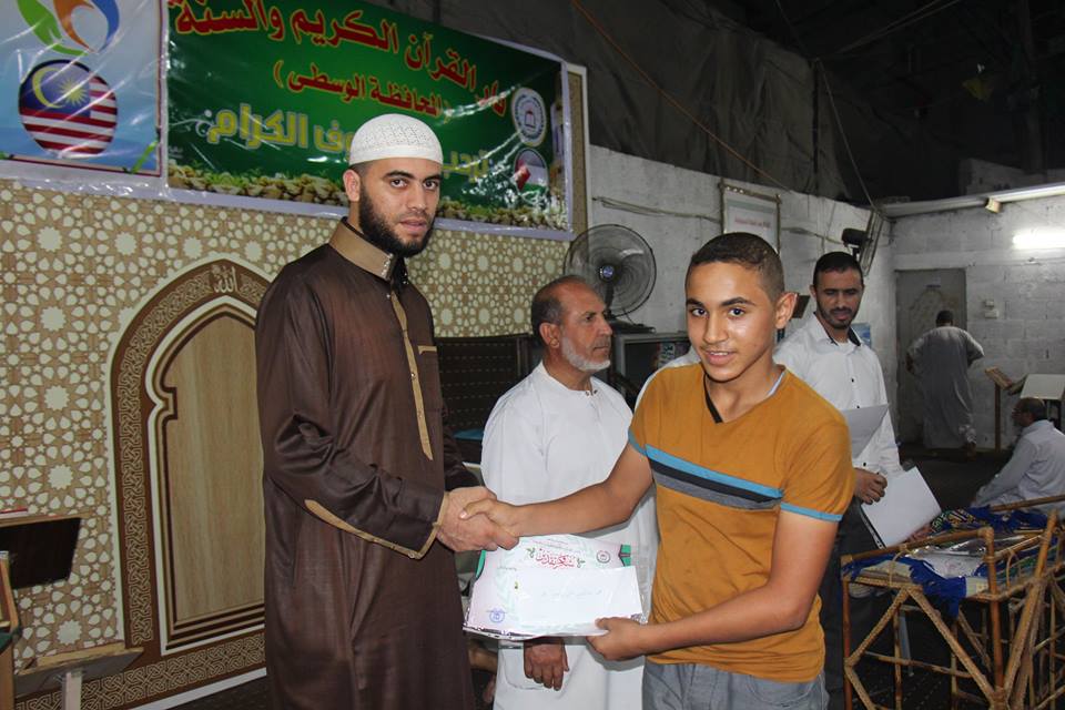 كرمت دار القرآن الكريم والسنة بمخيم النصيرات وسط قطاع غزة حلقات الأقصى الشريف لتحفيظ القرآن الكريم، بمسجد القسام بالمخيم.