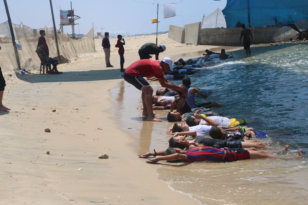 وتطرق أبو سيدو في كلمته أمام الطلاب إلى فقرات المخيم المميزة والضوابط العامة المطلوب الالتزام بها، كما وأكد أن "روّاد" حريصة كل الحرص على تنمية الجيل تنمية شاملة متكاملة لتؤهله للمضي قدماً في خضم الحياة ومشاقها وتجعل منه إنساناً منتجاً فاعلاً في المجتمع قادراً على التغيير والتأثير، وفي اليوم الأول للمخيم كان الفقرة الأولى محاضرة عن القضية الفلسطينية وتلاها اللقاء الأول في دورة تعليم مهارات السباحة.