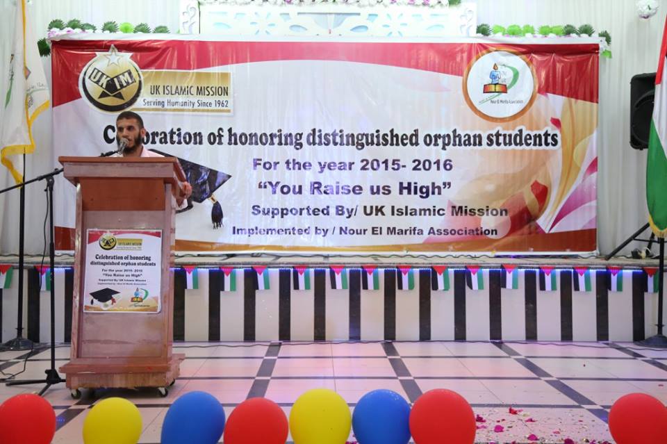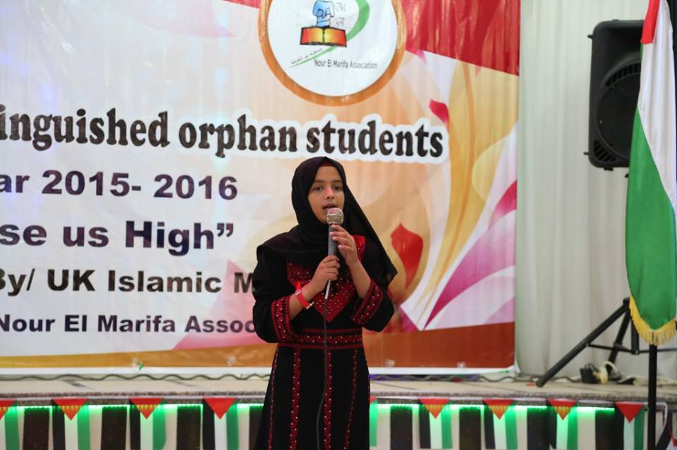 نظم مركز أمان لتمكين الأيتام والمحتاجين بجمعية نور المعرفة احتفالاً لتكريم 150 من الطلبة الأيتام المتفوقين المكفولين في الجمعية في مختلف المراحل التعليمية، ومن مختلف أنحاء القطاع وذلك ضمن احتفال بهيج قُدمت فيه الفقرات الاستعراضية الفنية وفقرة الدبكة الشعبية.