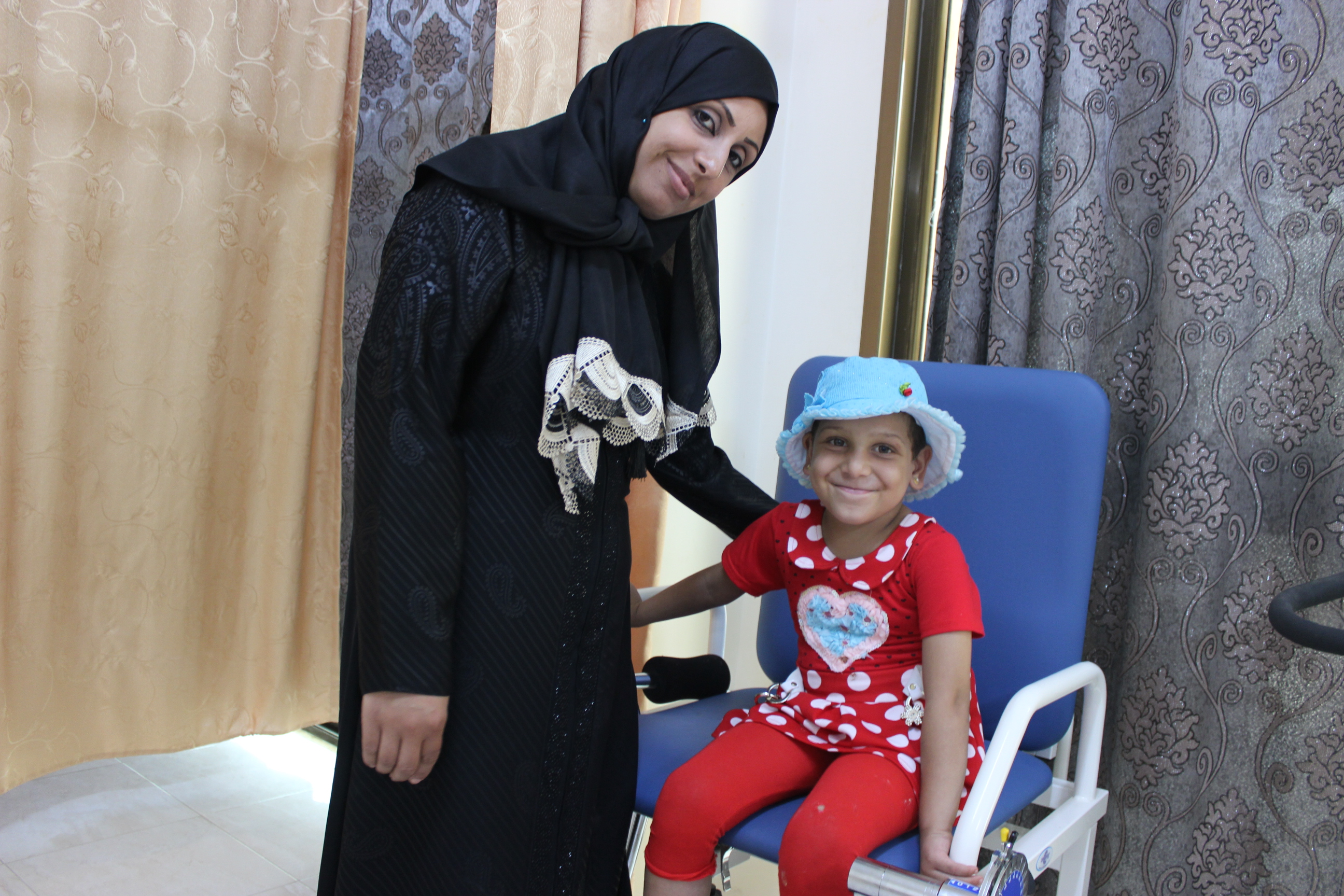 التقينا السيدة فايزة محيسن والدة الطفلة في مستشفى الوفاء للتأهيل الطبي الذي تمكث فيه ، وبالكاد تمكنا من إجراء المقابلة مع والدتها لتخبرنا بتفاصيل الحكاية، فأسارير ميار قد بسطت البهجة على المكان كله بعد مشيها على قدميها وعودتها لطبيعتها لتنهي بذلك صمت خيم على الغرفة لأسابيع.