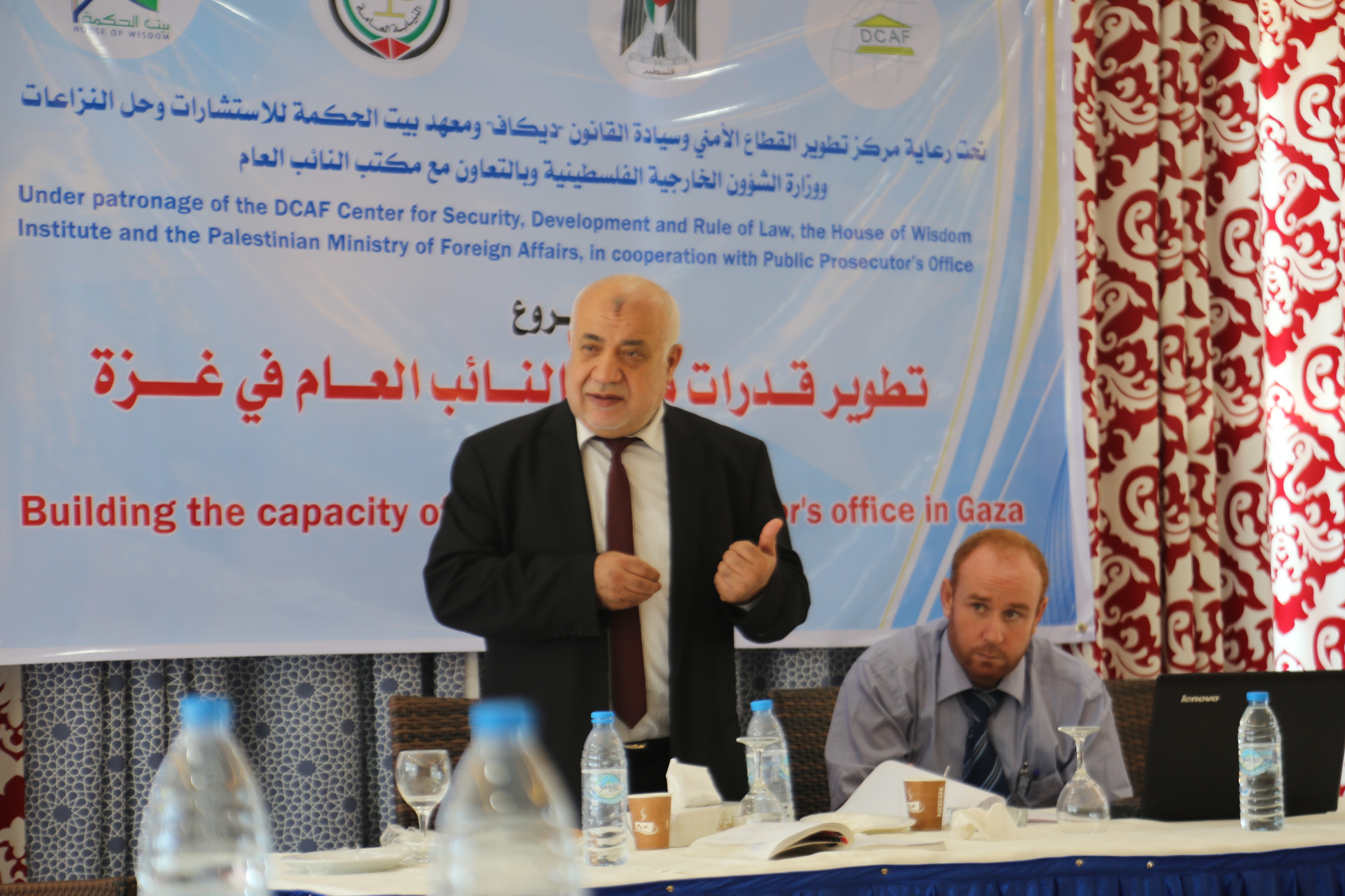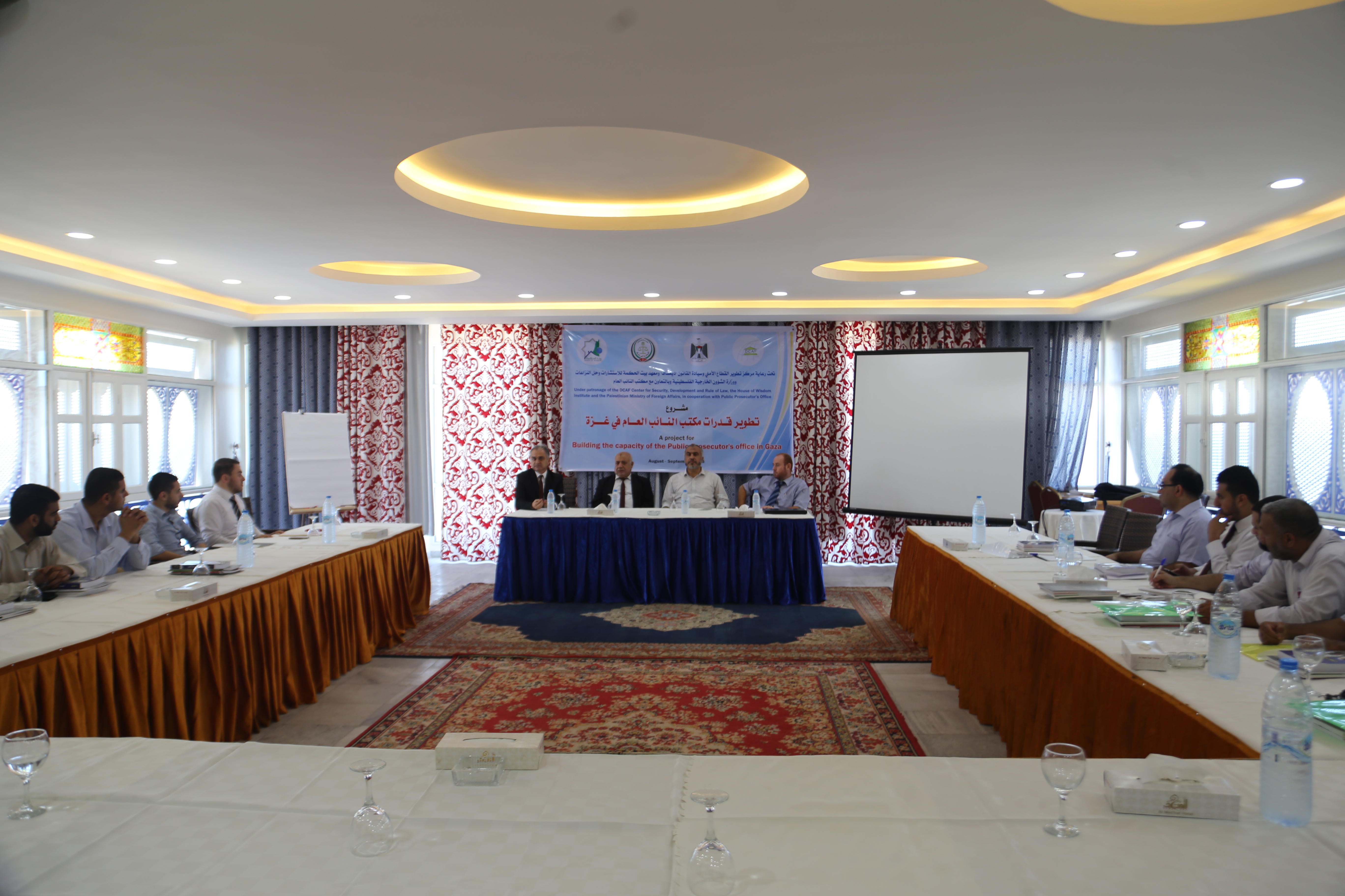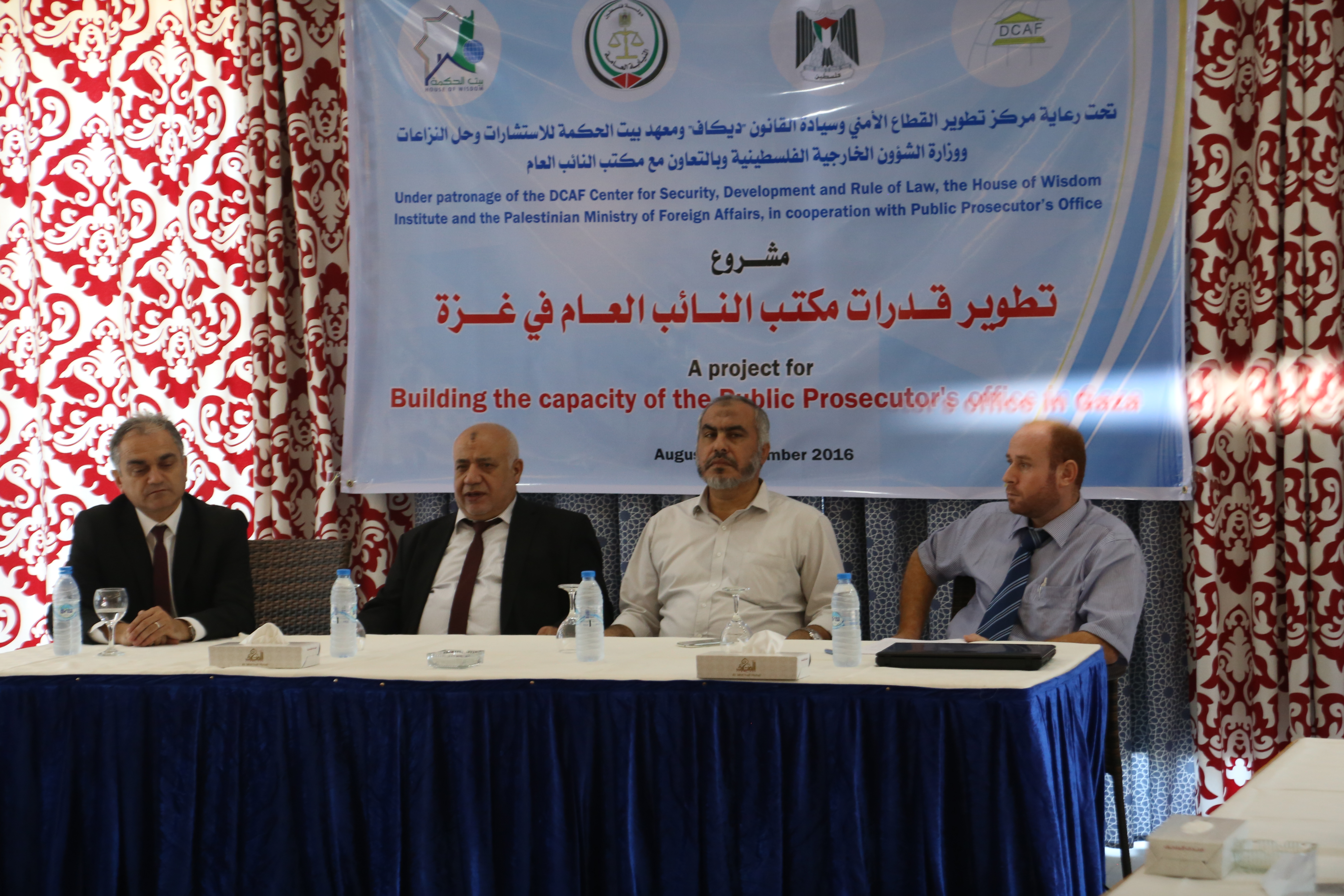 وافتتح اللقاء النائب العام المستشار إسماعيل جبر و غازي حمد وكيل وزارة الخارجية ومحمود المدهون عضو مجلس أمناء بيت الحكمة ورئيس نيابة غزة حسام دكه.