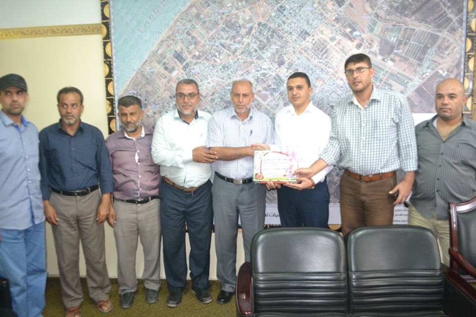 كرمت جمعية واعد للأسرى والمحررين بالمحافظة الوسطى لقطاع غزة رئيس بلدية النصيرات الأستاذ محمد أبو شكيان بحضور الأسير المحرر جلال صقر، والأسير المحرر محمد الحشاش مدير الجمعية بالمحافظة، والناطق باسم جمعية واعد عبد الله قنديل، وعدد من الأسرى المحررين.