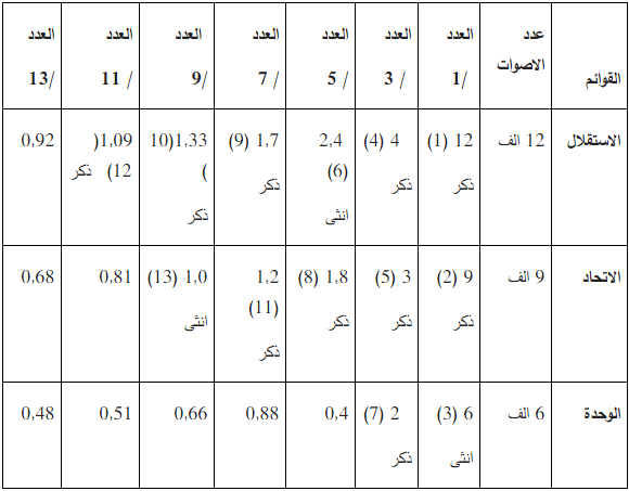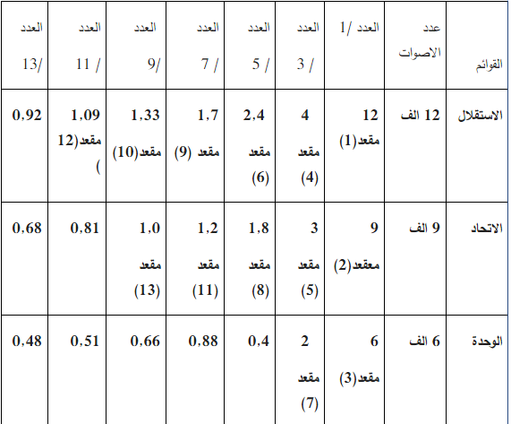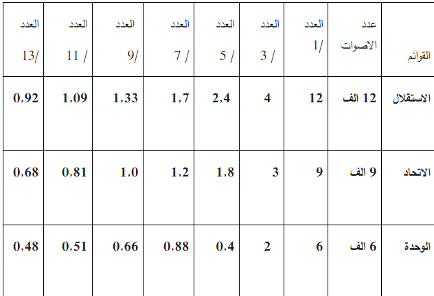 تقسم اصوات القوائم الانتخابية على الارقام الفردية حسب الجدول  التالي: