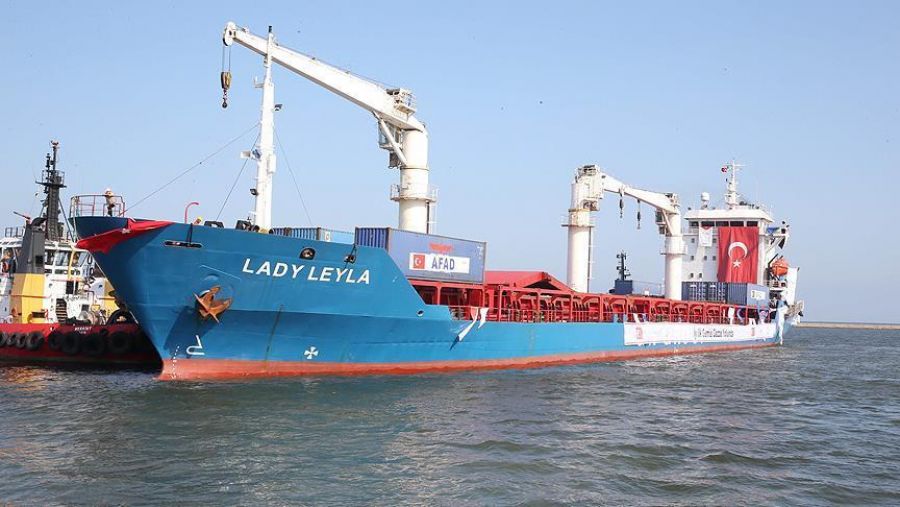 وذكرت الإذاعة أن السفينة تحمل على متنها 5 آلاف طن من المساعدات الإنسانية التركية إلى سكان قطاع غزة قبيل حلول عيد الأضحى المبارك.