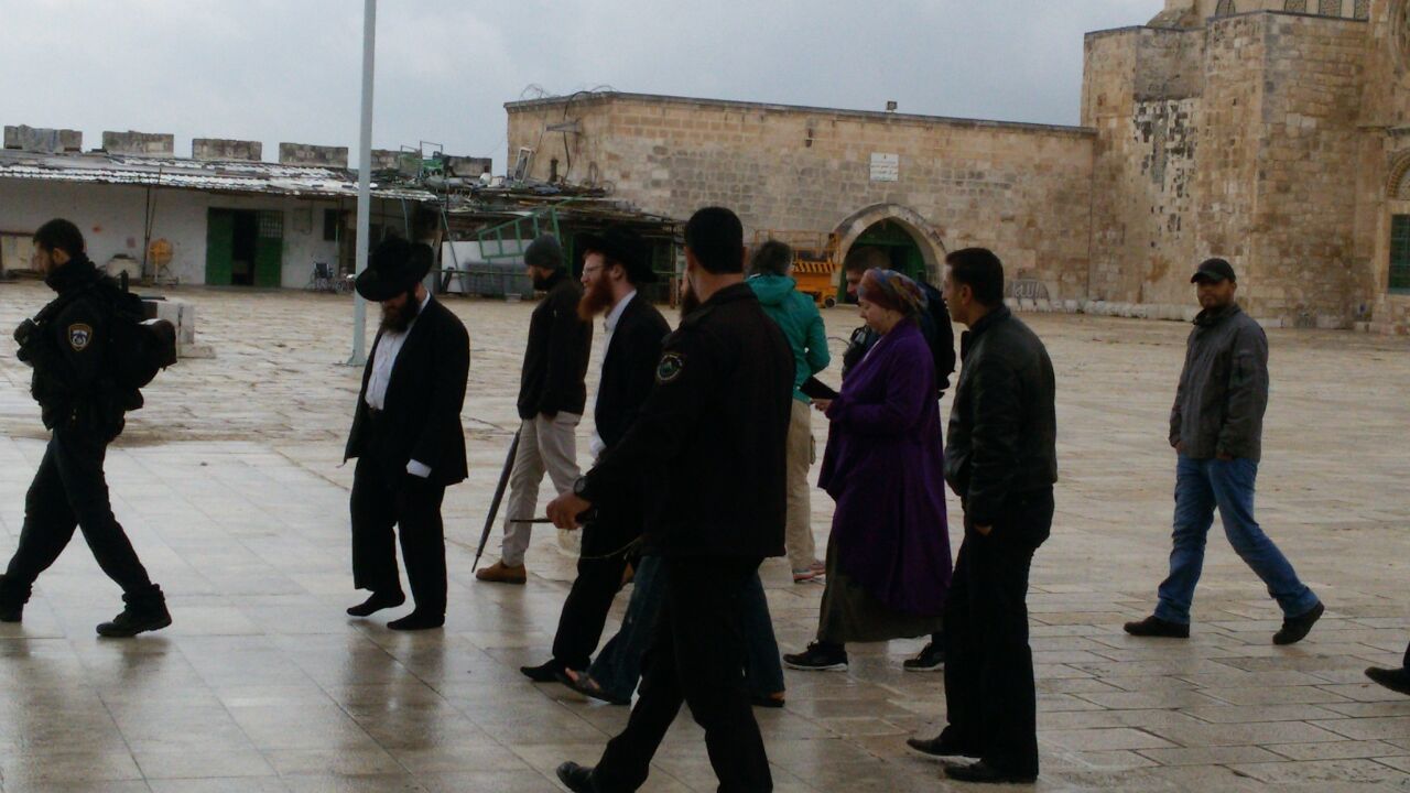 ونقلت مصادر صحفية عن مدير قسم المخطوطات بالمسجد الأقصى، الدكتور رضوان عمرو، أنه: "تجري الآن مراسم عقد قران رسمية لمستوطنين في الساحات الشرقية من المسجد الاقصى المبارك بحراسة الشرطة والقوات الخاصة وكاميرات الاعلام العبري وغيـاب تام لأهل المسجد عدا ثلة من حراسه الميامين".