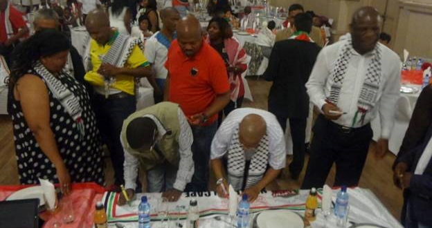 وذكر المتحدثون بما كان يردده الزعيم العالمي الراحل نلسون مانديلا، "إن حرية جنوب إفريقيا ستبقى منقوصة ما لم تحصل فلسطين على حريتها".