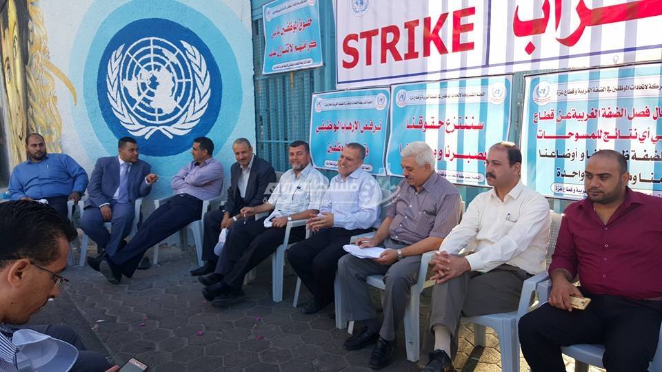 نظم "اتحاد الموظفين" في "وكالة الأمم المتحدة لغوث وتشغيل اللاجئين الفلسطينيين في الشرق الأدنى" (أونروا) في قطاع غزة، صباح اليوم الأربعاء، إضراباً عن العمل؛ ليوم واحد احتجاجاً على تقليص إدارة الوكالة لخدماتها المقدمة للموظفين.