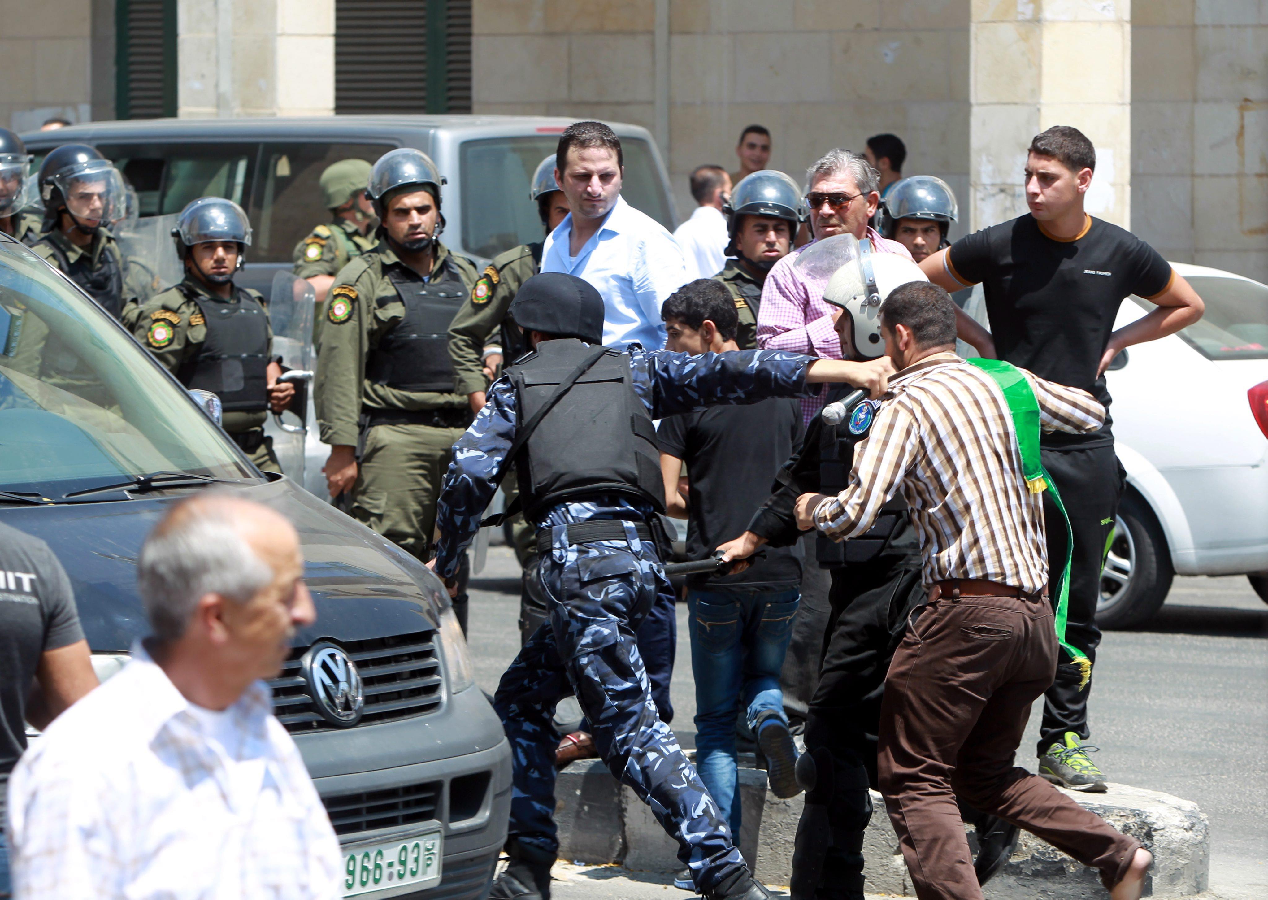 وقالت مصادر محلية إنه بعد دقائق من بدء الاعتصام تعرض المشاركون فيه لاعتداء بالضرب من أنصار حركة "فتح" التي نظمت مسيرة مضادة لدعم عباس.
