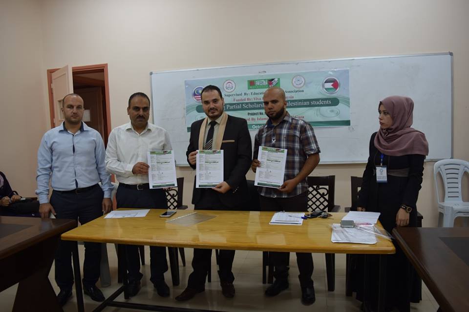 وزعت جمعية الملتقى التربوي بالتعاون مع تنمية الموارد في الجامعة الإسلامية منح دراسية على 32 طالب وطالبة من الجامعة الإسلامية بقيمة 200 دولار لكل منحة، بتمويل من (فيفا فلسطين ماليزيا).