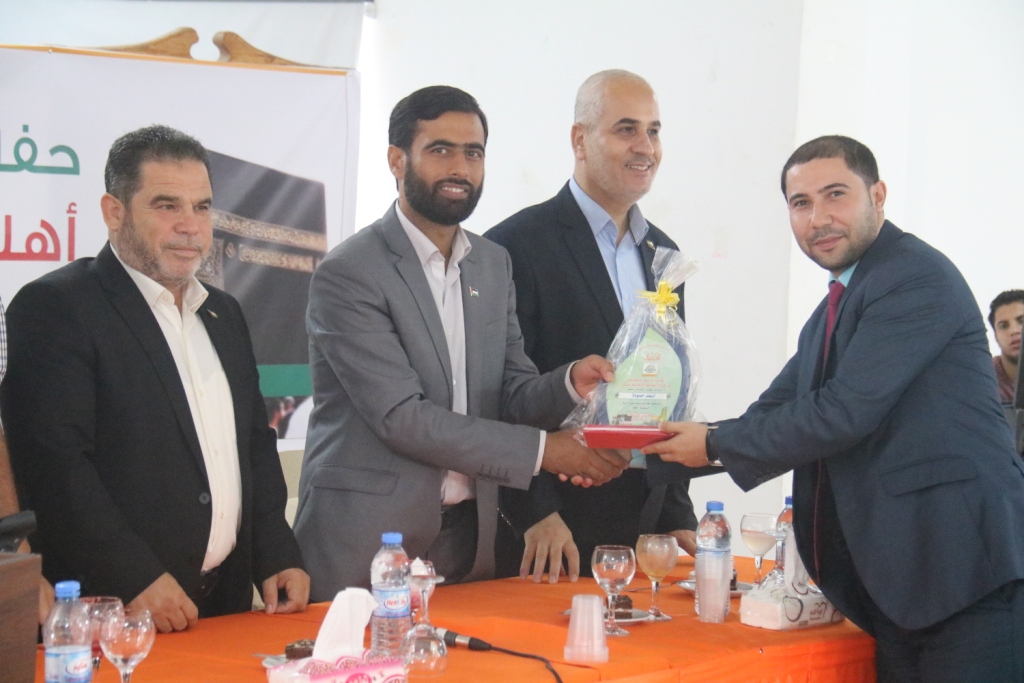 وتقدم مسئول لجنة العلاقات الإعلامية في الدائرة الإعلامية لحركة حماس، مشير المصري، خلال حفل التكريم الذي نظمته الحركة في فندق آدم على شاطئ بحر غزة، بالتهنئة والمباركة للحجاج ، داعياً الله أن يتقبل منهم ، وأن يكون حجهم مبروراً وذنبهم مغفوراً ويعيد الله موسم الحج القادم وقد تحررت أرضنا ومقدساتنا.