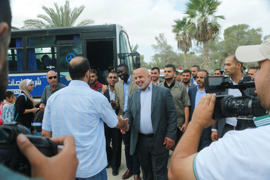 وكان في استقبال الوفد بصالة كبار الزوار بالمعبر كلا من اللواء توفيق أبو نعيم مدير عام قوي الأمن الداخلي ومدير عام هيئة المعابر محمد أبو زايد.