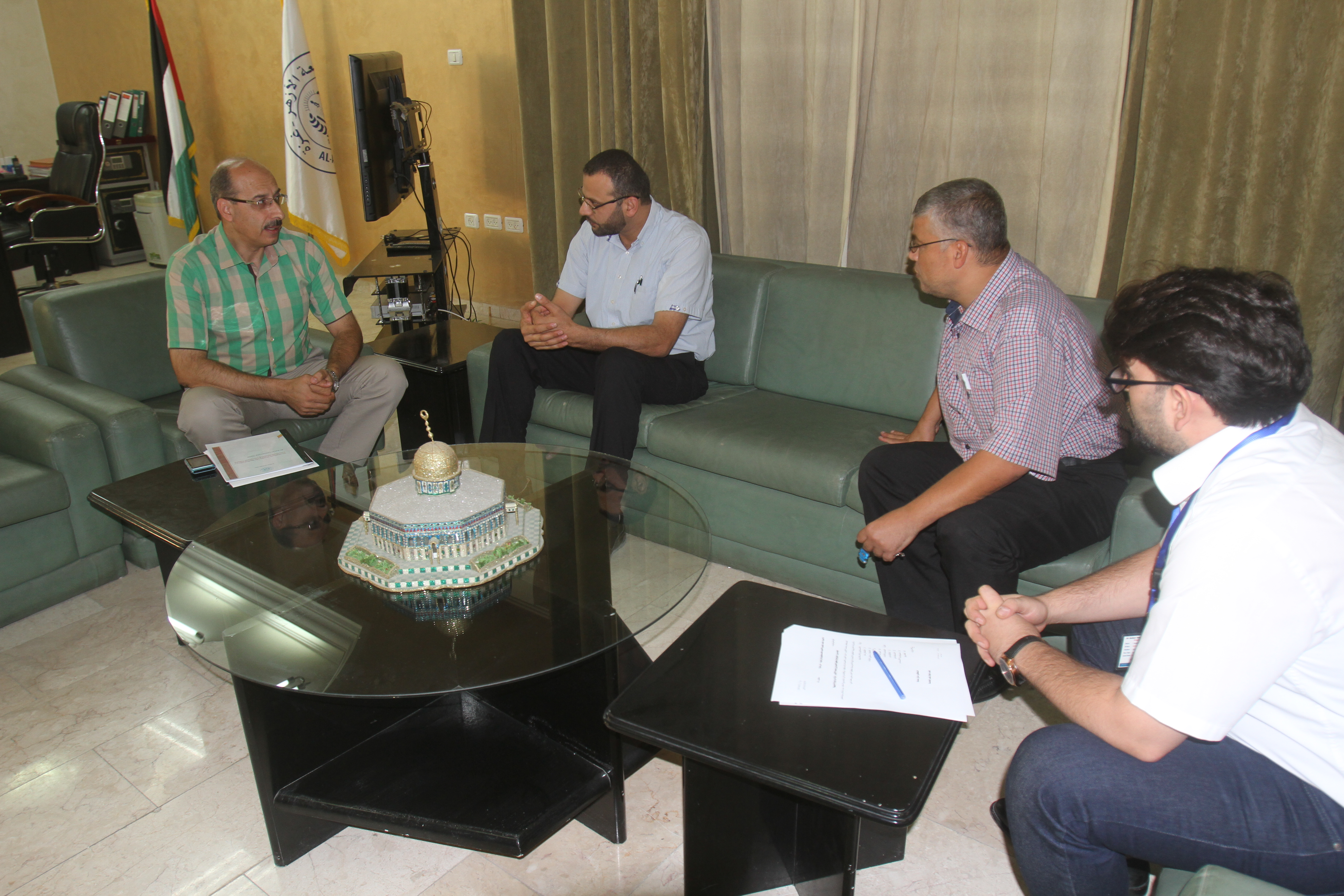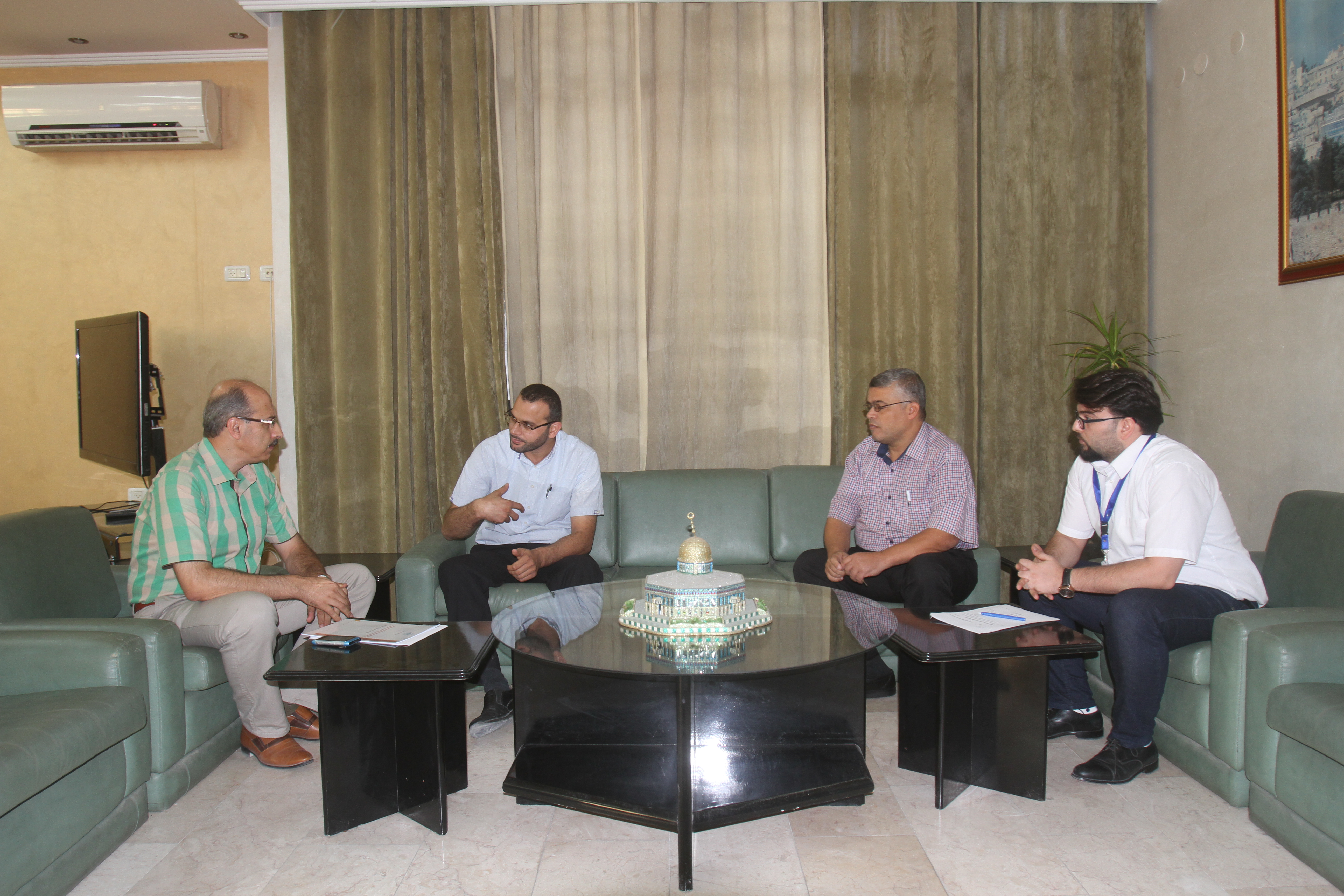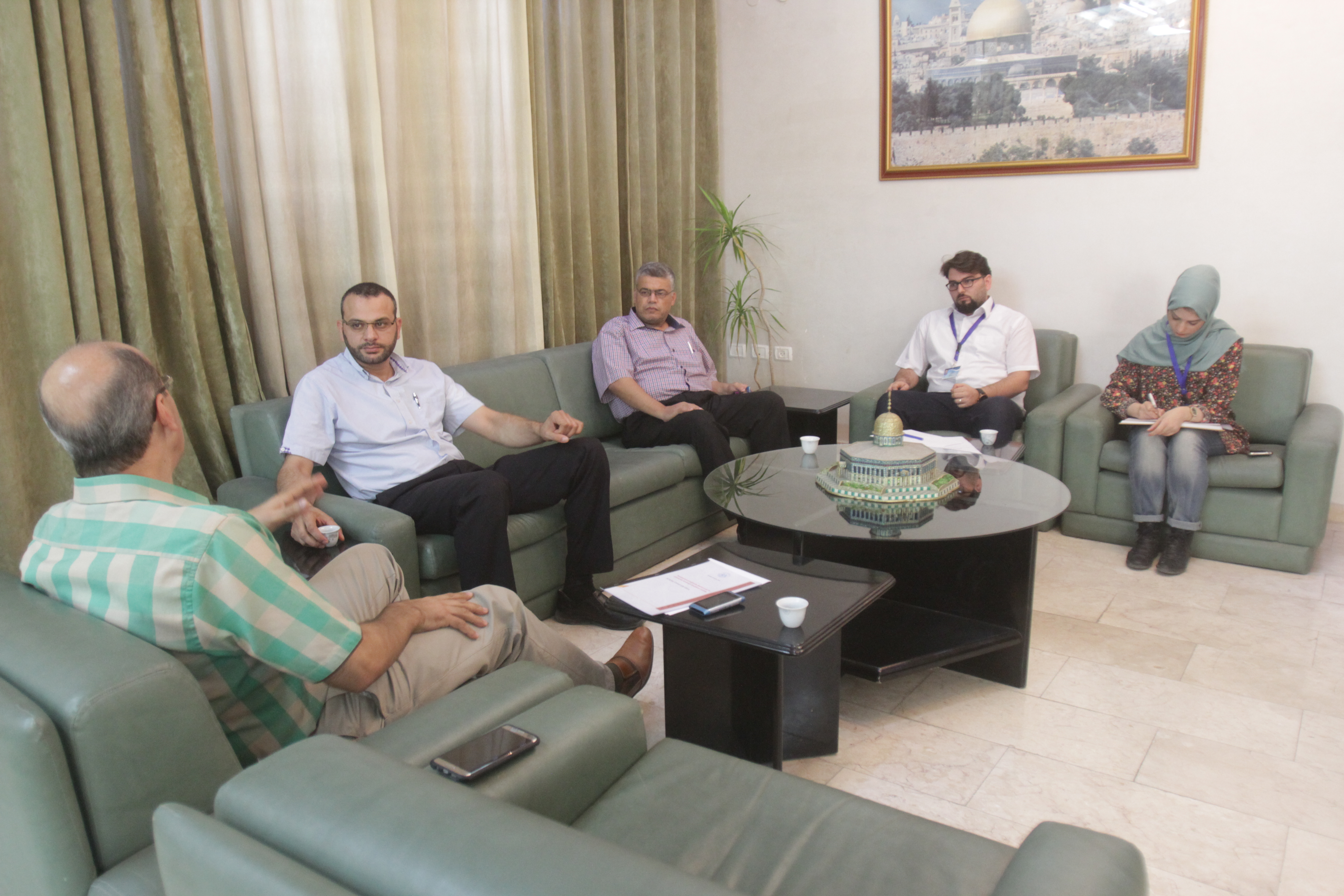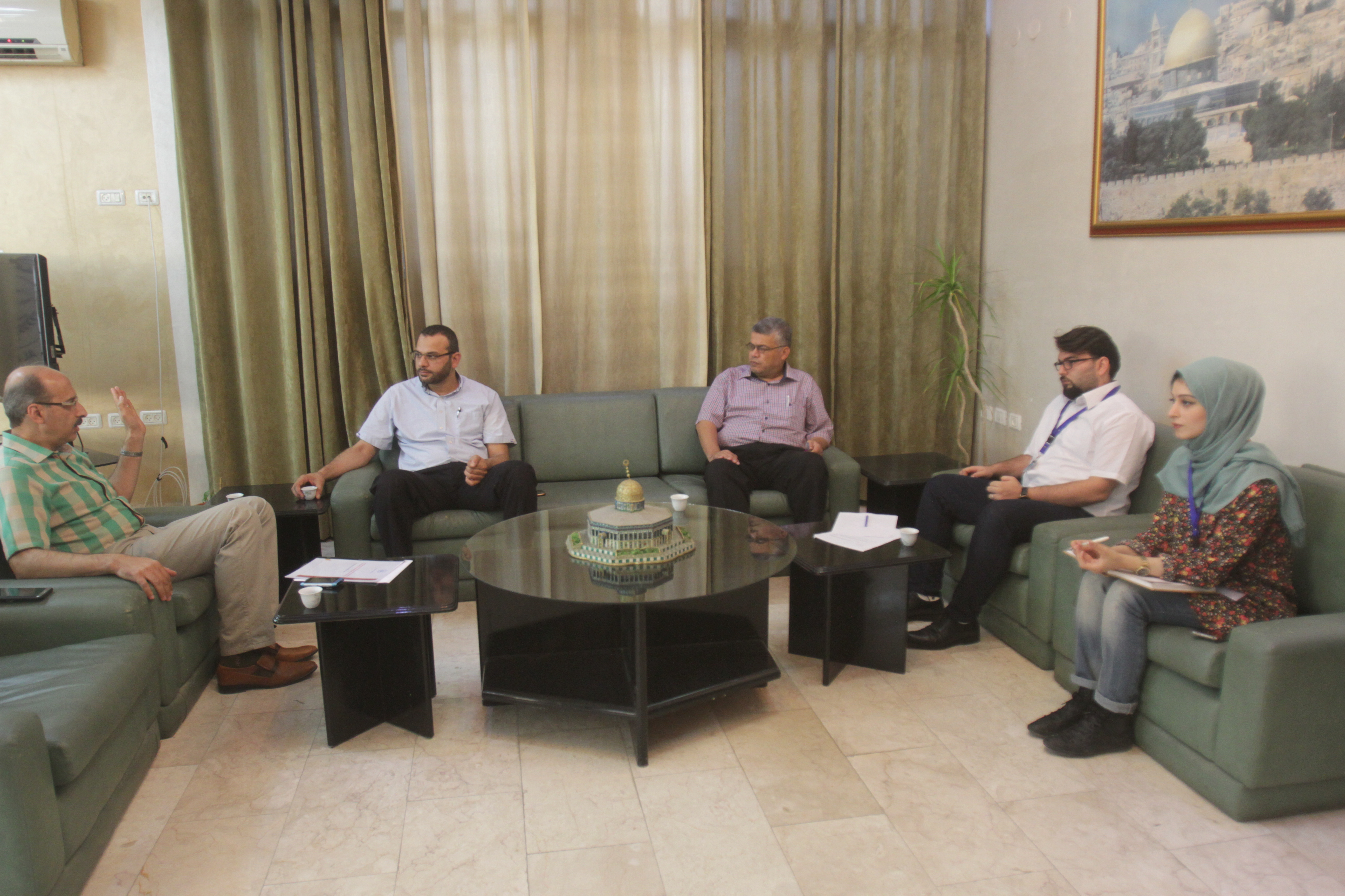 وضم الوفد الزائر الدكتور أحمد أبو ندى مدير مكتب غزة والدكتور محمد أبو ندى العضو في التجمع، وكان في استقبالهما من الجامعة الدكتور مازن حمادة رئيس ديوان رئيس الجامعة وطاقم وحدة العلاقات الدولية بالجامعة.
