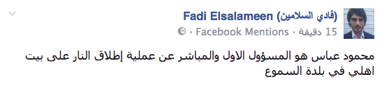 من جانه حمل الناشط فادي السلامين الذي يقطن في الولايات المتحدة الأمريكية، رئيس السلطة محمود عباس شخصيا باستهداف منزل عائلته، وقال: "محمود عباس هو المسئول الأول والمباشر عن عملية إطلاق النار على بيت أهلي ببلدة السموع".