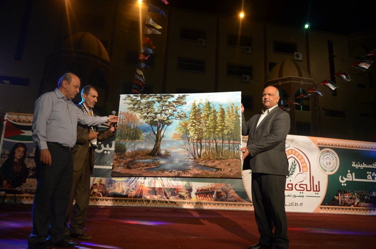 اختتمت جامعة فلسطين ووزارة الثقافة الفلسطينية فعاليات أسبوع فلسطين الثقافي "ليالي فلسطين جسور نحو الجذور"، بحضور وفد من وزارة الثقافة يترأسها الدكتور أنورالبرعاوي وكيل الوزارة، والمهندس عماد الأغا رئيس مجلس إدارة جامعة فلسطين وأعضاء من مجلس الإدارة والدكتور سالم صباح رئيس الجامعة ونواب رئيس الجامعة وعدد من كوادر الجامعة الأكاديمية والإدارية، ولفيف من ممثلي المؤسسات الخاصة والأهلية والمراكز الثقافية، والوجهاء والأهالي وطلبة الجامعات.