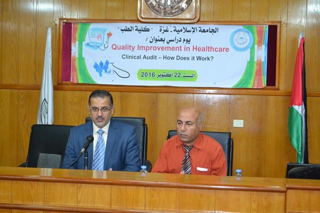 نظمت كلية الطب بالجامعة الإسلامية بغزة يوما دراسيا بعنوان "تحسين الجودة في الرعاية الصحية والتقييم السريري كأداة" بحضور عدد كبير من المهتمين والباحثين وطلبة السنوات الأخيرة في الكليات الصحية في الجامعات الفلسطينية في قطاع غزة.