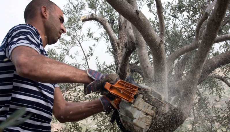 مستوطنون يقطعون أشجار زيتون في أراضي نحالين