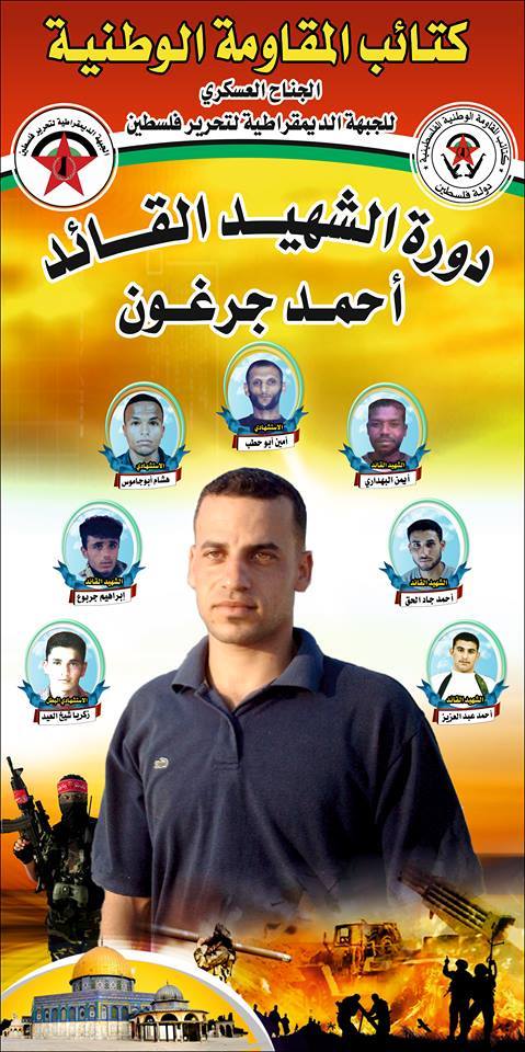 أجرت كتائب المقاومة الوطنية الجناح العسكري للجبهة الديمقراطية لتحرير فلسطين، حفل تخريج دورة عسكرية متخصصة في رفح، بعنوان "دورة الشهيد القائد أحمد جرغون" لوحداتها القتالية في الموقع العسكري للكتائب، تخليداً لذكرى استشهاد الرفيق القائد أحمد جرغون، واستمراراً للتجهيز والتدريب والإعداد.
