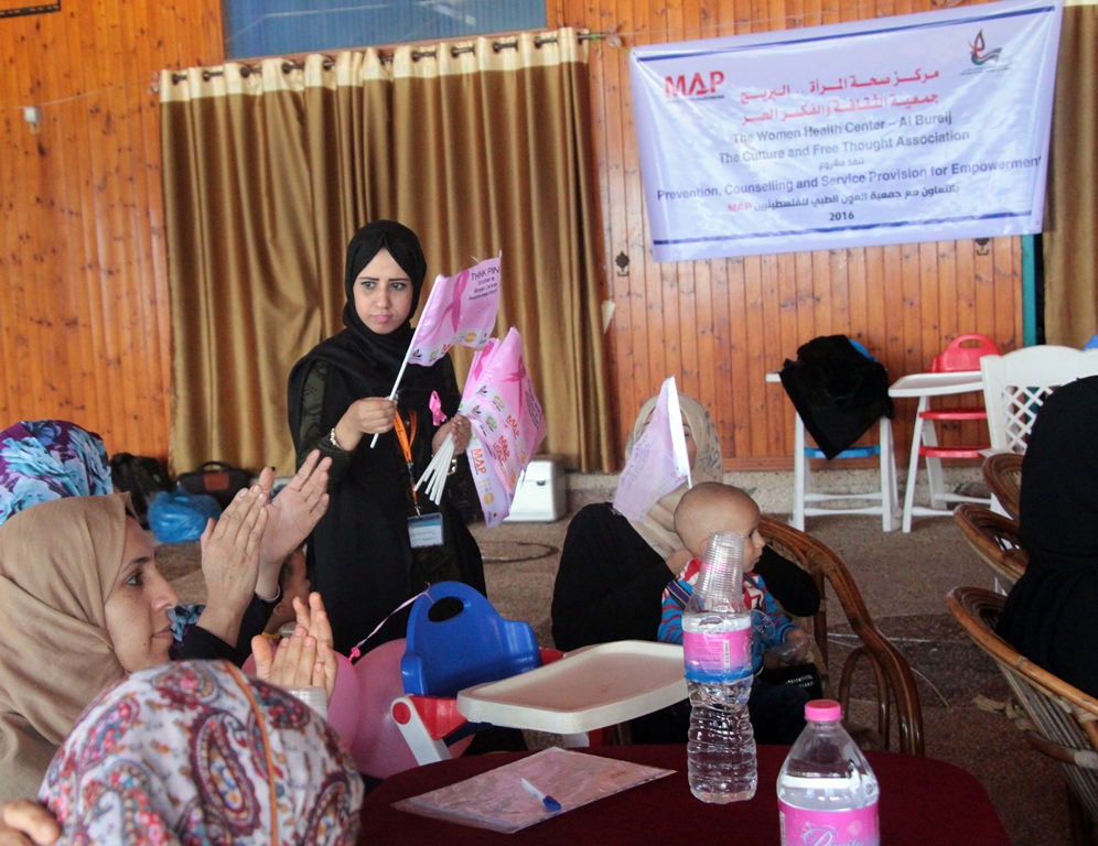 وأضافت الهبيل، أن هذا اليوم الترفيهي جاء بالشراكة مع جمعية العون الطبي للفلسطينيين MAP التي قدمت ومازالت تقدم العديد من الخدمات الصحية والنفسية والاجتماعية للمصابات بسرطان الثدي من ضمنها توفير جهاز لتوفير تحاليل دلائل الاورام التي تعاني النساء صعوبة بالغة في الحصول عليها بسبب عدم توافرها بشكل متقطع وشحيح بمنشئات وزارة الصحة وتوفير جلسات دعم الاقران لدعم النساء المصابات بسرطان الثدي نفسياً وتنفيذ تدريبات تمكين مهاراتية واجتماعية لهن وتوفير أدوية ومستلزمات طبية ، بالإضافة لأنشطة التثقيف الصحي والاجتماعي وتنفيذ زيارات ميدانية لمتابعة الحالات صحياً ونفسياً