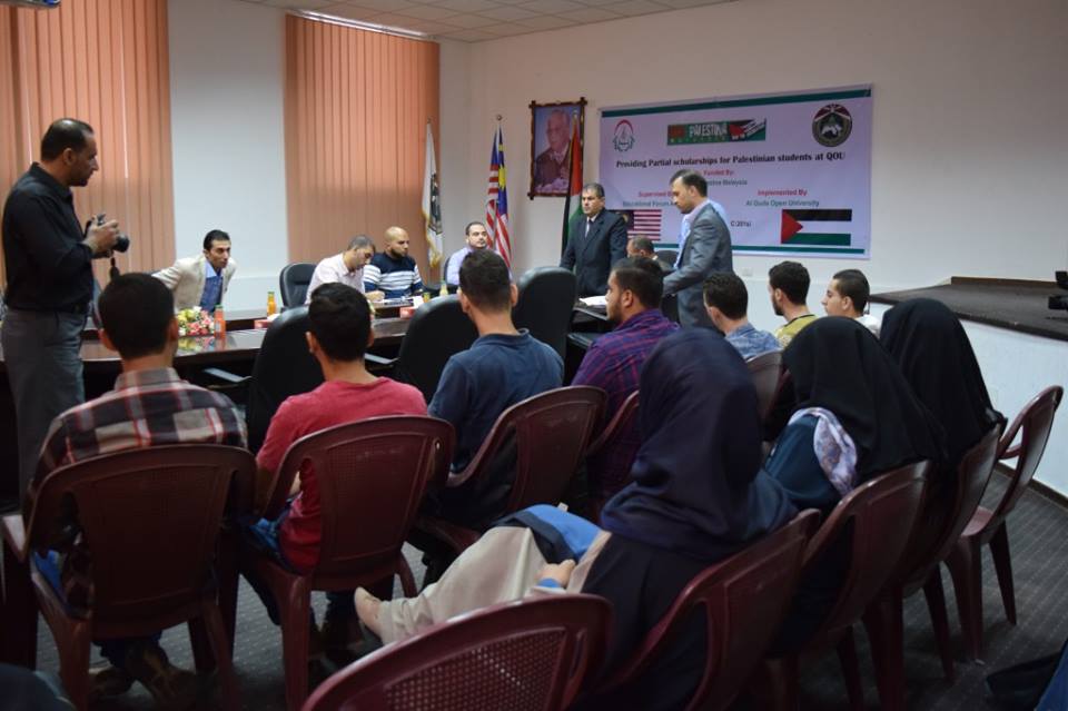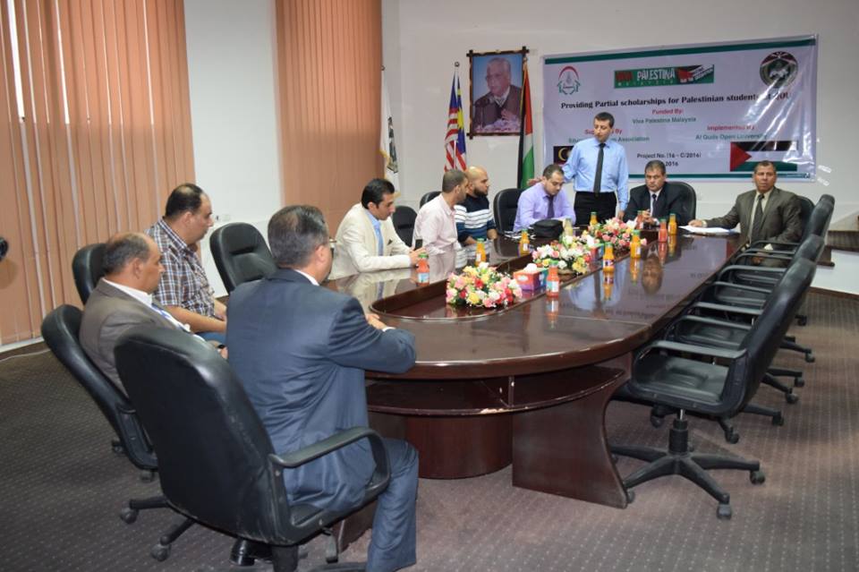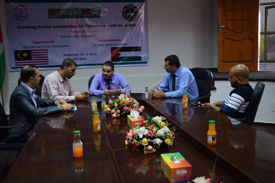 جاء ذلك خلال حفل جمع الطلاب المستهدفين بإدارة الجامعة، بحضور المهندس هاني ثريا ممثل عن مؤسسة فيفا فلسطين ماليزيا، والأستاذ أكرم أبو جياب المدير التنفيذي لجمعية الملتقى التربوي، والأستاذ محمد بارود مدير وحدة الرعاية الاجتماعية في الجمعية.