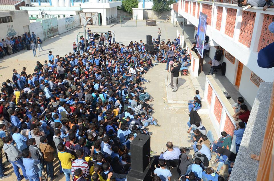 ونوه أبو العطا أن هذا المسرح تنفذه الكتلة بمشاركة الفنان المتميز راجي النعيزي برفقة عدد من الفنانين الفلسطينيين لكي يتمكنوا من خلاله رسم البسمة على شفاه الطلاب ومعالجة السلوكيات بطريقة هادفة ومتميزة وجذابة.