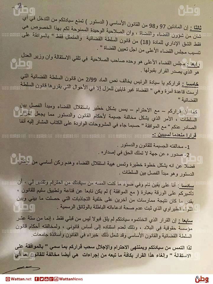 من جانبه، تقدم القاضي علي مهنا أيضا بدعوى للمحكمة الدستورية نشرها على صفحته على "الفيسبوك"، يطلب فيها اعادته إلى رئاسة مجلس القضاء الأعلى مستندا على قرار للمحكمة ذاتها، ينص على نفي وجود قرار من محكمة العدل العليا بإنهاء عمله! هذا الأمر يعني بأن الصراع على رئاسة القضاء أصبح محتدما، خاصة حول تساؤلات أمام الرئيس، فيما إذا كان أصبح رئيسا لكل السلطات!