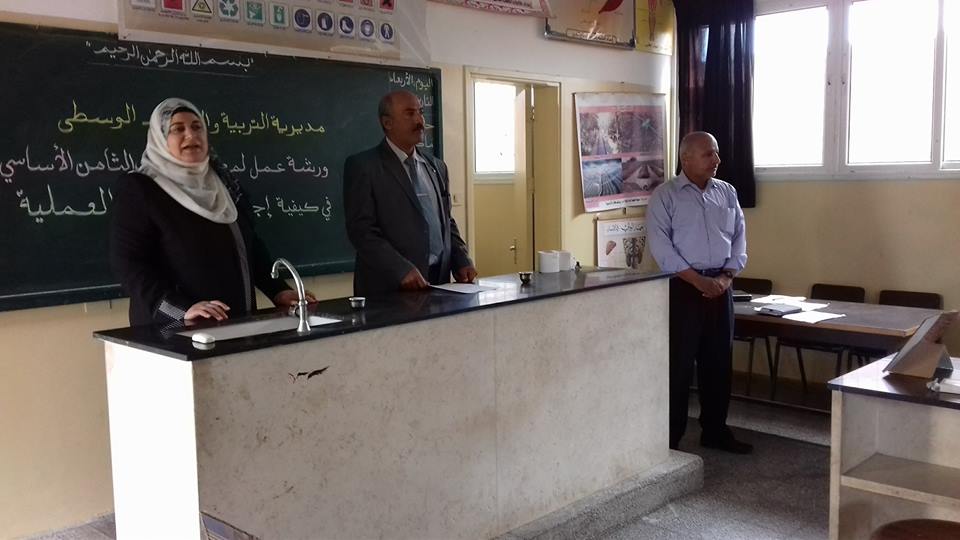 عقدت مديرية التربية والتعليم بالوسطى ورشة عمل حول كيفية إجراء التجارب العملية لمعلمي الصف الثامن بحضور مشرف الأحياء خالد أبو رجيلة ومشرف الكيمياء أحمد أبو جريبان ومشرف الفيزياء جهاد حرز الله وذلك بمدرسة رودلف فلتر الأساسية المشتركة بحضور مديرة المدرسة فاطمة البطنيجي.