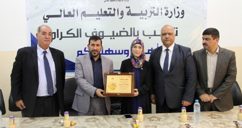 وقام بالتكريم د. زياد ثابت وكيل وزارة التربية والتعليم العالي حيث منح المعلمة الحروب درع الوزارة التكريمي، وذلك بحضور د. أيمن اليازوري وكيل الوزارة المساعد لشؤون التعليم العالي، وجميع المديرين العامين ، وحضور د. سالم صباح رئيس جامعة فلسطين وأ. رفعت صباح مدير عام مركز إبداع المعلم.