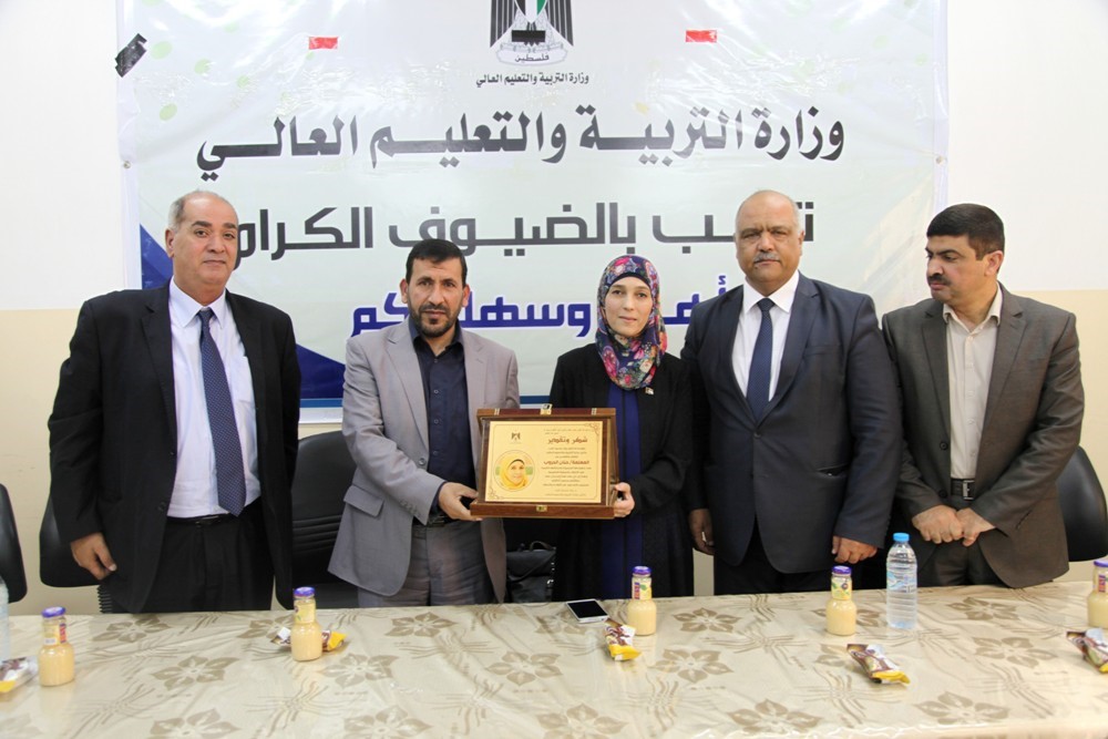 كرمت وزارة التربية والتعليم العالي بغزة المعلمة الفلسطينية حنان الحروب والتي فازت بجائزة أفضل معلم في العالم خلال شهر مارس الماضي ضمن المسابقة التي تطلقها مؤسسة فاركي البريطانية.